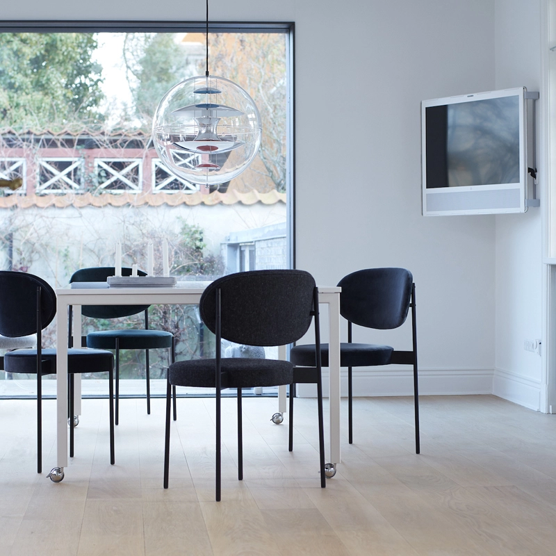 En 2015, Verpan a redécouvert une chaise oubliée dans les Archives Panton. Dévoilée pour la première fois en 1967, elle a été produite pendant très peu de temps. En se basant sur les dessins originaux et les notes de Verner Panton, Verpan a pu imaginer à nouveau ce magnifique design en l’adaptant aux normes modernes. Verner Panton avait dessiné la chaise Series 430 comme une étude ayant pour but de procurer le même confort qu’un fauteuil. Il réussit cela en appliquant un système traditionnel de sangles à l’assise entièrement rembourrée, pour s’adapter au poids du corps. S’ajoute à cela un large dossier enveloppant et une structure légère et élégante montée à l’extérieur de l’assise et du dossier. Empilable, raffinée et confortable, Series 430 est réellement une chaise multifonctions qui s’intègre aussi bien à la maison, dans un restaurant ou un bureau.
