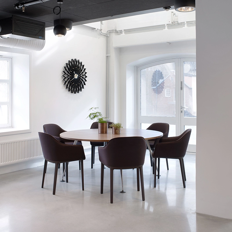 Fondée en 1950 par Willi et Erika Fehlbaum, Vitra est une marque emblématique de mobilier design suisse, reconnue pour ses chaises iconiques, fauteuils d’exception et tables contemporaines. Située près de Bâle, en Suisse, l’entreprise s’est imposée comme un acteur incontournable du design international grâce à des collaborations avec des designers de renom tels que Charles & Ray Eames, Verner Panton, Antonio Citterio, Alexander Girard et les frères Bouroullec.