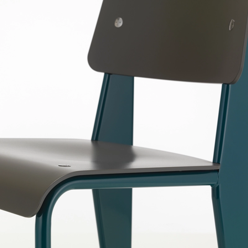 On ne compte plus les classiques du design dessinés par Jean Prouvé ! Parmi eux, on trouve la chaise Standard. Le designer et architecte conçoit cette chaise en partant du constat qu'une assise est soumise à la charge la plus importante au niveau des pieds situés à l' arrière, et doit supporter le poids du buste. La Standard SP (siège en plastique), est aujourd'hui rééditée par Vitra en réactualisant cette assise iconique sans en changer la forme ni l'idée de départ : un siège et un dossier en plastique résistant, disponible dans une palette de couleurs choisies avec attention pour lui donner une allure contemporaine pour le bureau ou autour de la table de salle à manger.