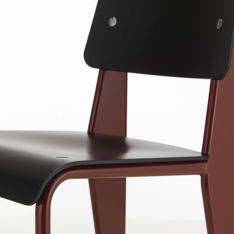 On ne compte plus les classiques du design dessinés par Jean Prouvé ! Parmi eux, on trouve la chaise Standard. Le designer et architecte conçoit cette chaise en partant du constat qu'une assise est soumise à la charge la plus importante au niveau des pieds situés à l' arrière, et doit supporter le poids du buste. La Standard SP (siège en plastique), est aujourd'hui rééditée par Vitra en réactualisant cette assise iconique sans en changer la forme ni l'idée de départ : un siège et un dossier en plastique résistant, disponible dans une palette de couleurs choisies avec attention pour lui donner une allure contemporaine pour le bureau ou autour de la table de salle à manger.