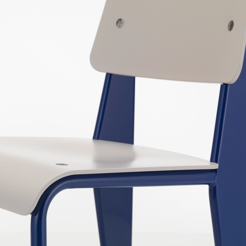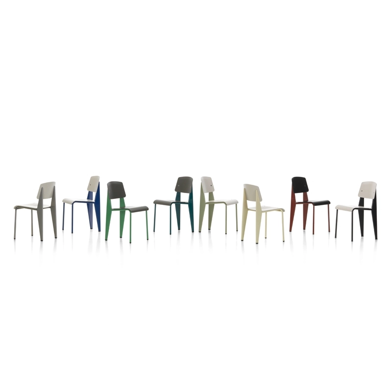 On ne compte plus les classiques du design dessinés par Jean Prouvé ! Parmi eux, on trouve la chaise Standard. Le designer et architecte conçoit cette chaise en partant du constat qu'une assise est soumise à la charge la plus importante au niveau des pieds situés à l' arrière, et doit supporter le poids du buste. La Standard SP (siège en plastique), est aujourd'hui rééditée par Vitra en réactualisant cette assise iconique sans en changer la forme ni l'idée de départ : un siège et un dossier en plastique résistant, disponible dans une palette de couleurs choisies avec attention pour lui donner une allure contemporaine pour le bureau ou autour de la table de salle à manger.