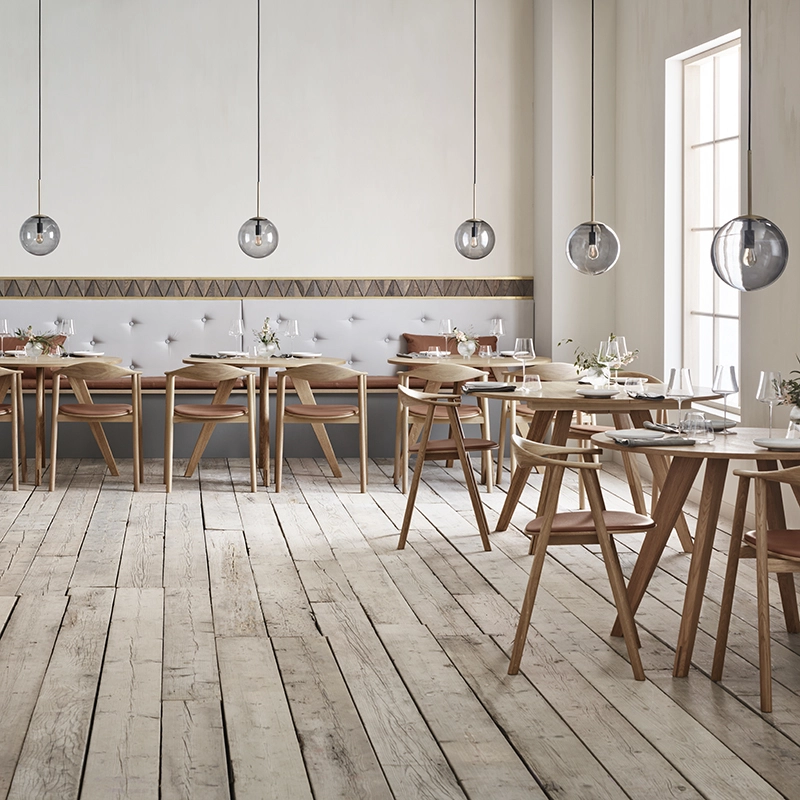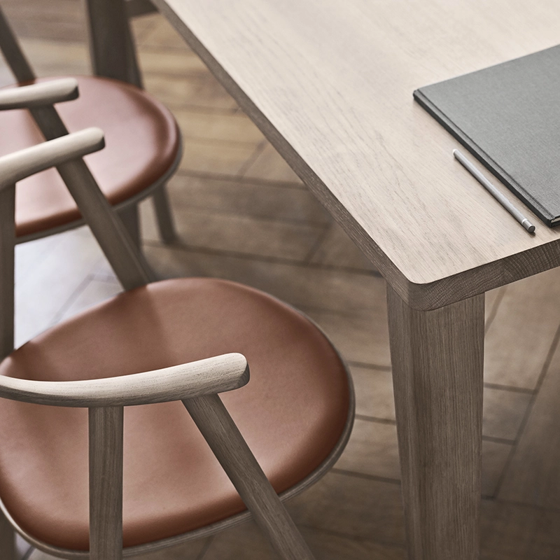 chêne massif huilé, assise placage de chêne certifié fsc et cuir sydney