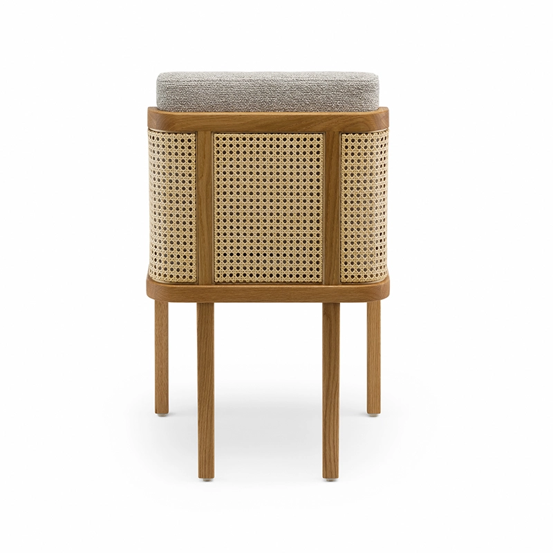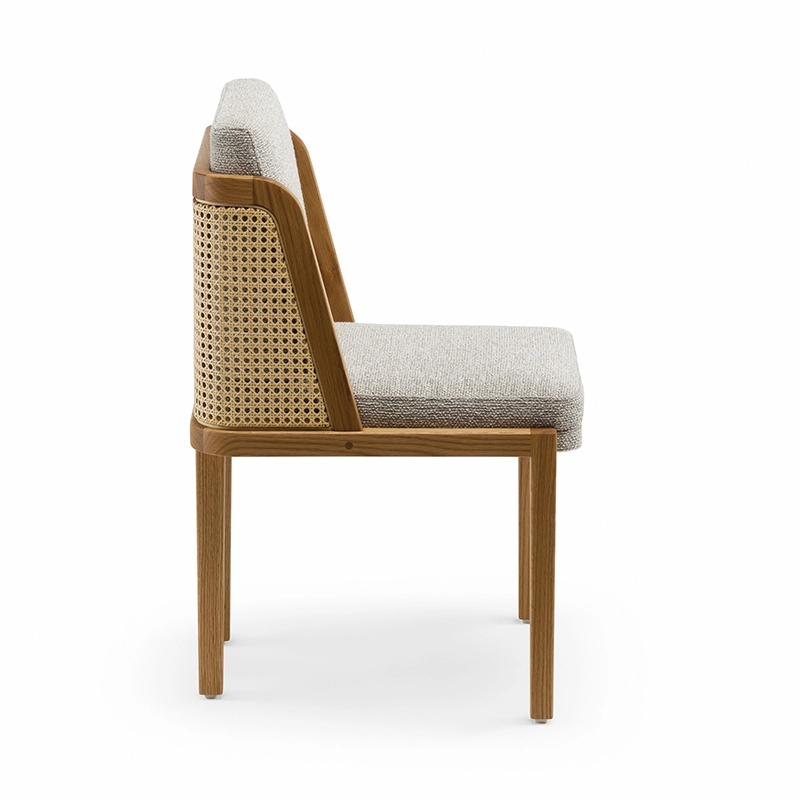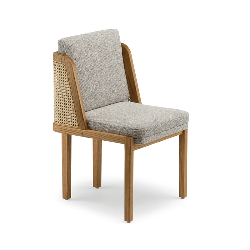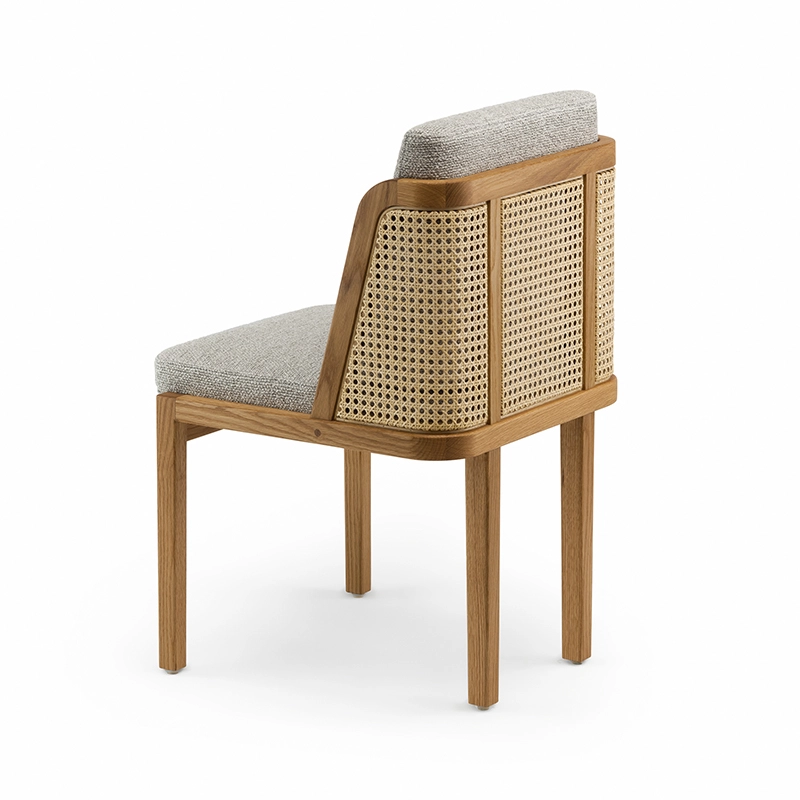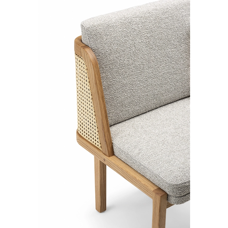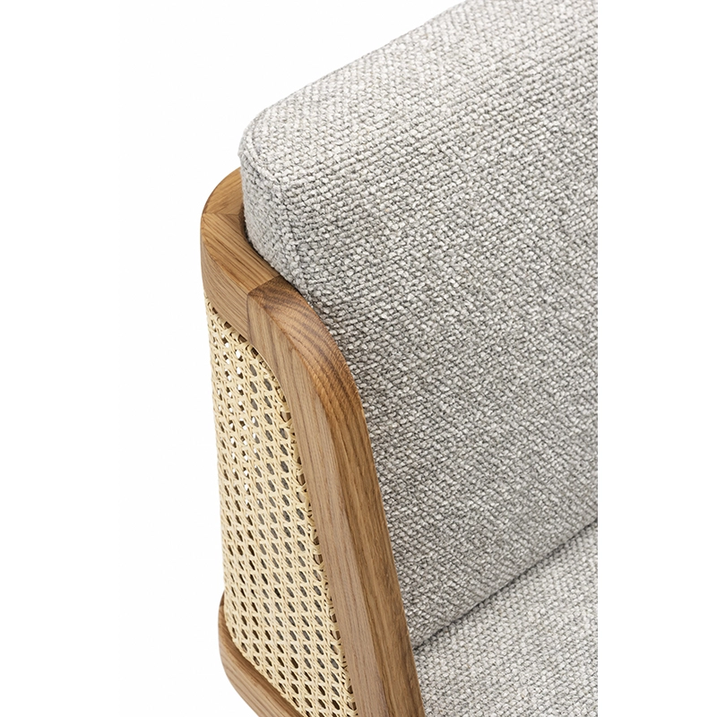 chêne huilé, coussins assise et dossier tissu, dos cannage rotin