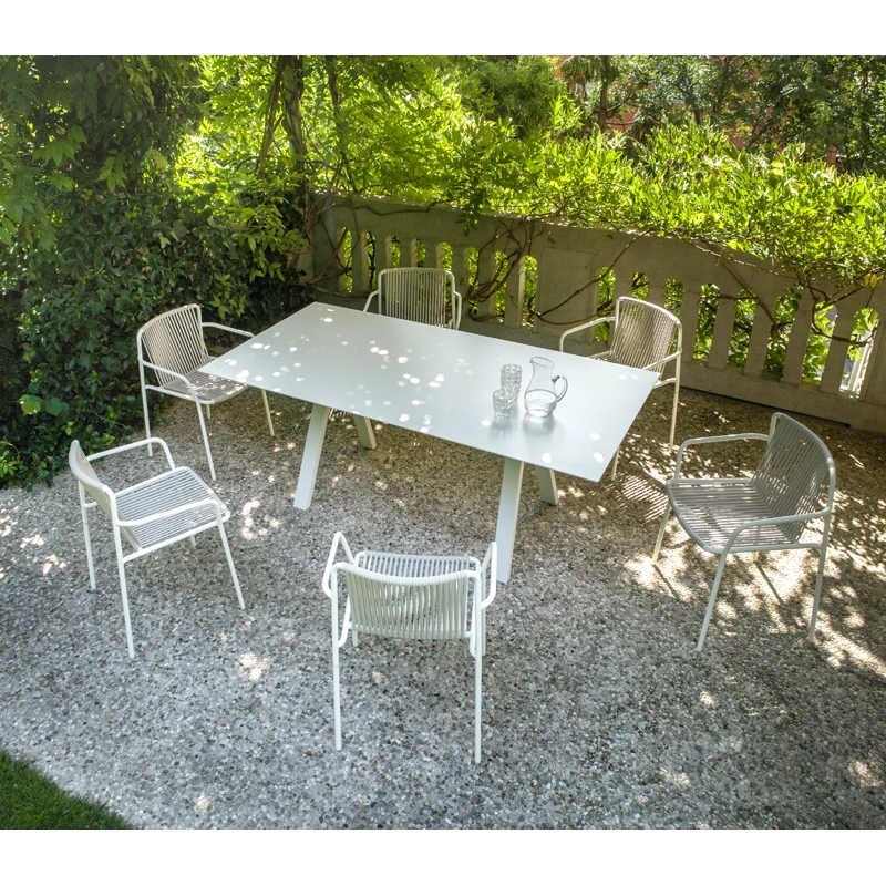 Editée par Pedrali, Tribeca est une réinterprétation moderne des chaises de terrasse classiques des années 60 en acier entrelacé. La chaise Tribeca est dotée d’une structure en tube Ø20mm peint pour l'extérieur. Le dossier et l’assise sont créés à partir d’un entrelacement de fil de PVC renforcé en Nylon. La technique et les matériaux utilisés ont permis de proposer une chaise à la fois confortable et légère. Disponibles en version avec ou sans accoudoirs, les chaises empilables Tribeca sont spécialement conçues pour une utilisation en extérieur.