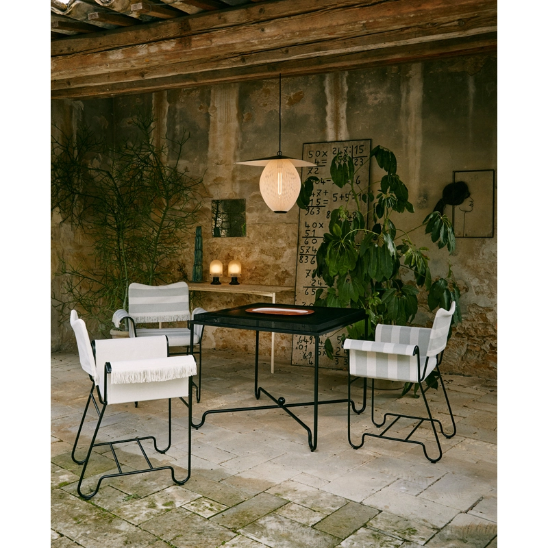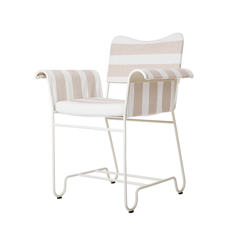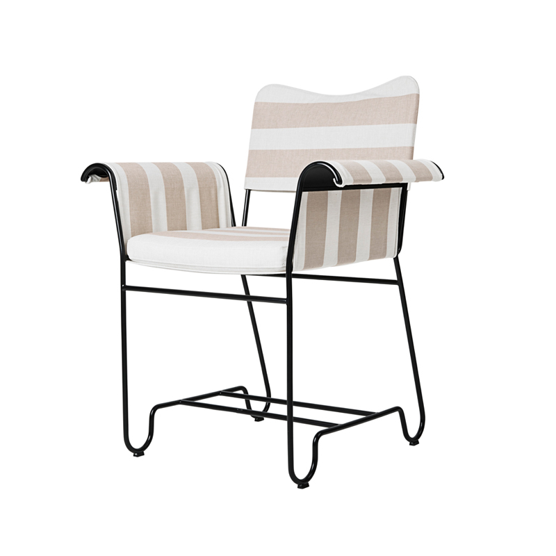 Créée dans les années 50 par le designer Mathieu Matégot, la collection de mobilier Outdoor Tropique capture l’élégance intemporelle et le luxe exotique de la vie en plein air sur la côte d’azur à la moitié du 20ème siècle. Plus de 50 ans après, Gubi rend hommage à Mathieu Matégot avec la réédition d’une de ses plus célèbres collections. Développée peu de temps après son retour de la Seconde Guerre mondiale, Tropique fut l’une de ses collections clés qui a permis à Mathieu Matégot d’établir sa réputation de designer. Sortie de production depuis des décennies, la collection Tropique renait pour le 21ème siècle, donnant la possibilité à une nouvelle génération de vivre « la dolce vita » comme imaginée par Mathieu Matégot. Combinant simplicité matérielle et esthétique décadente, la collection Tropique comprend deux petits fauteuils de repas et une table. La structure de chaque pièce est réalisée en tubes d’acier inoxydable avec une courbe distinctive au niveau des pieds, qui unit la collection dans un ensemble cohérent.  Pour les chaises Tropique, l’assise et le dossier sont fabriqués désormais dans un tissu pour l’extérieur, durable et flexible. Suspendue comme un hamac sur la structure, l’assise est enveloppante et peut être retirée facilement. Le dossier est rembourré avec de la mousse et un coussin indépendant apporte à l’assise un confort optimal. Le petit fauteuil Tropique est disponible avec ou sans franges sur les accoudoirs.