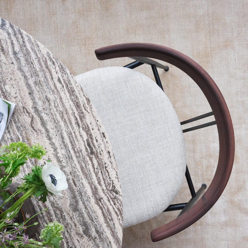 Dessinée par le duo GamFratesi pour la marque Gubi, Violin est une collection de chaises élégantes, légères et contemporaines, qui illustre parfaitement le savoir-faire, la créativité et la compréhension des matériaux du duo de designers. Le nom fait référence aux deux lignes parallèles qui s’étendent du dossier jusqu’à une barre horizontale sous le siège, évoquant les cordes d’un violon, ou même un diapason. La musicalité du nom résonne avec une chaise qui évoque un instrument de musique dans sa géométrie, sa symétrie et son savoir-faire. D’autres détails tels que les lignes douces de chaque côté de ces barres parallèles imprègnent la chaise d’une expression distinctive. Les détails raffinés donnent à la chaise Violin sa signature esthétique ainsi qu’un support fonctionnel pour le dossier. La structure effilée supporte un siège généreux tout en rondeur et un dossier enveloppant qui s’étend pour soutenir les bras, les coudes ou les mains. La forme du dossier permet des mouvements faciles tout en étant très confortable, même après un long diner. Disponible avec une assise rembourrée associée à un dossier en bois ou dans une version plus volumineuse où l’assise et le dossier sont rembourrés, la chaise Violin est dotée d’une silhouette claire et d’une identité forte, trouvant sa place aussi bien dans les intérieurs contemporains que dans les espaces collectifs. Avec son poids réduit, la chaise Violin est facile à déplacer et sa structure ouverte lui donne un aspect aérien.