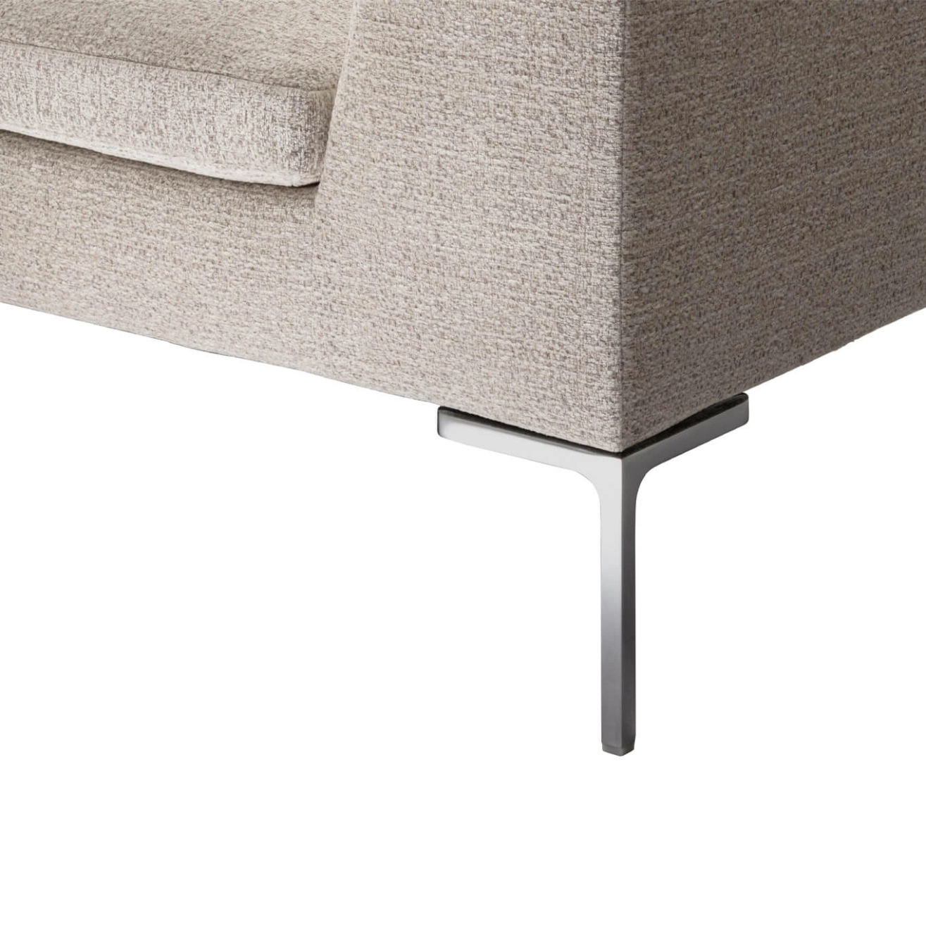 Structure en tubes et profilés d'acier, mousse de polyuréthane souple, pieds en fusion d'aluminium