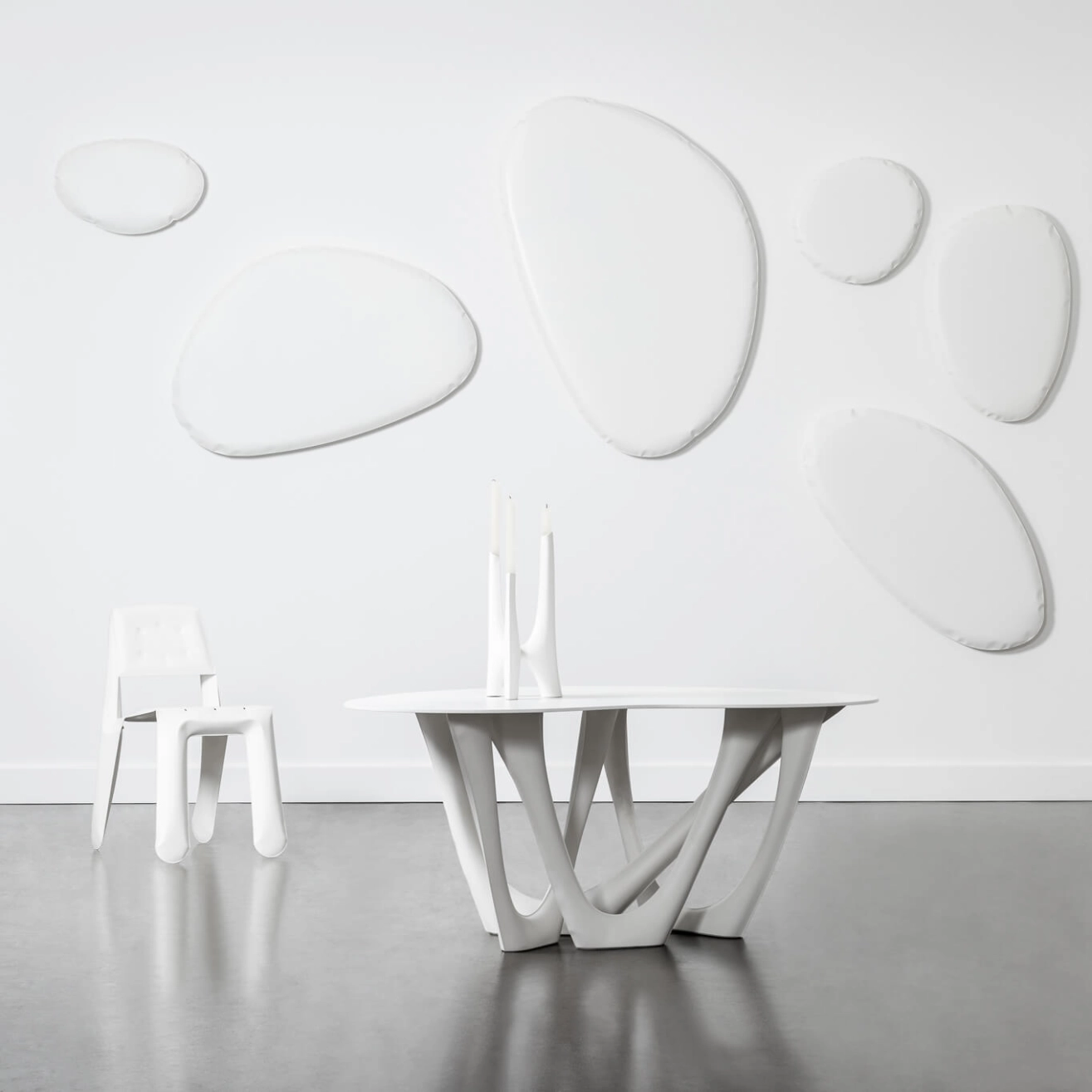 Fondé en 2010 par Oskar Zięta, Zieta Studio est une marque polonaise emblématique de mobilier design contemporain, reconnue pour son approche expérimentale et sculpturale du métal. Basée à Wrocław, en Pologne, l’entreprise s’impose comme un acteur avant-gardiste du design international grâce à sa technologie brevetée FiDU (Free Inner Pressure Deformation), un procédé innovant qui consiste à gonfler des plaques métalliques sous pression pour créer des formes tridimensionnelles uniques. Parmi les créations les plus emblématiques de Zieta, on retrouve le tabouret Plopp, véritable icône du design contemporain, le miroir Rondo, ou encore la G-Table, alliance parfaite entre artisanat de précision, esthétique organique et technologie de pointe.