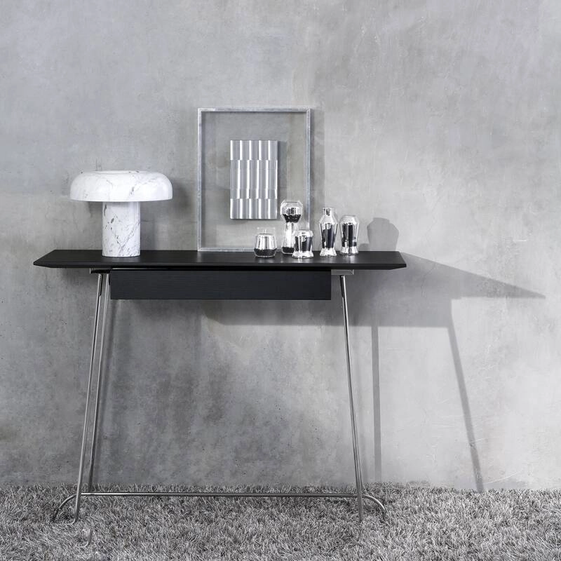 Dessinée par Marco Zanuso Jr pour COEDITION, Brera est une collection de mobilier comprenant un bureau, une console et un banc. A la fois robuste et visuellement léger, chaque meuble est composé d'un piètement en métal tubulaire fin surmonté d'un plateau en medium en plaqué noyer ou chêne laqué. La collection Brera s'intègre aussi bien dans les espaces domestiques (salon, bureau) , que dans les lieux collectifs, grâces à ses lignes modernes et à la qualité de ses matériaux. Le designer Marco Zanuso Jr explique que son travail se fait à travers la recherche de « lignes pures et simples, et comme le disait Vico Magistretti : Faire un objet simple, est la chose la plus compliquée du monde !»