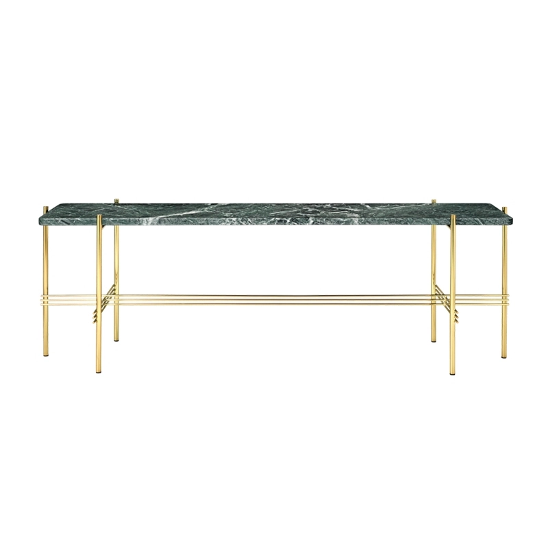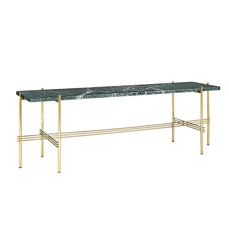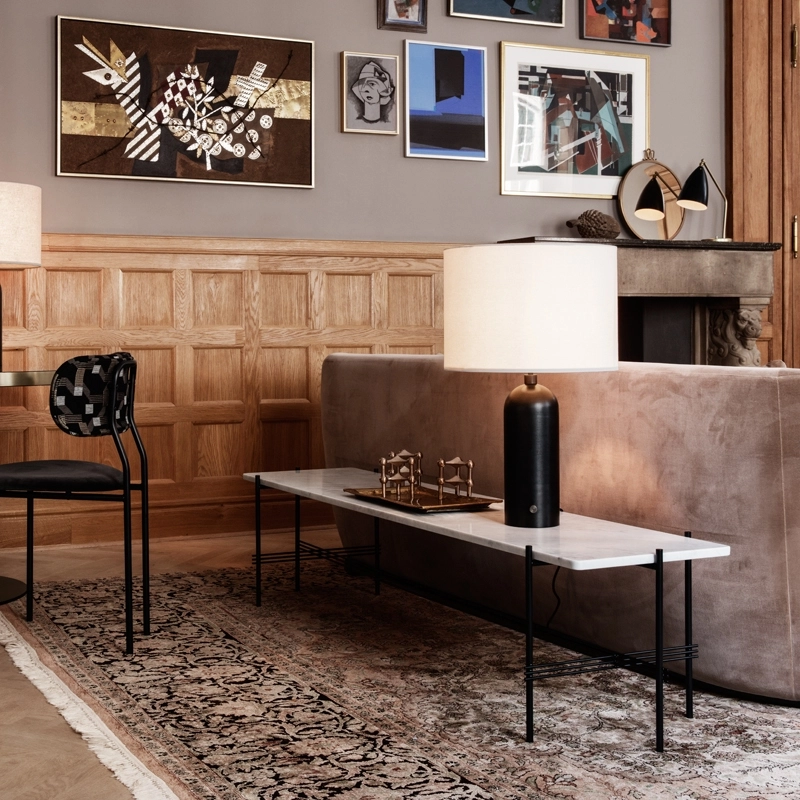 La collaboration entre le studio GamFratesi et la marque Gubi incarne la rencontre du design italien et l'inspiration danoise. L'approche minimaliste et l'artisanat traditionnel des pays scandinaves s'associent à un concept fort et émotionnel. GamFratesi joue sur les contrastes de matériaux et de formes avec un plateau en marbre ou en verre coloré reposant sur un piètement fin en métal noir ou laiton. Graphique et élégante, la console TS de Gubi apporte une touche d'élégance dans un salon ou entrée. La collection TS se décline également en version table basse, guéridon, table de repas et bureau.