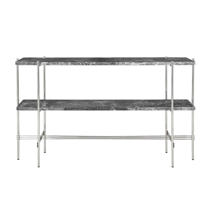 La collaboration entre le studio GamFratesi et la marque Gubi incarne la rencontre du design italien et l'inspiration danoise. L'approche minimaliste et l'artisanat traditionnel des pays scandinaves s'associent à un concept fort et émotionnel. GamFratesi joue sur les contrastes de matériaux et de formes avec un plateau en marbre ou en verre coloré reposant sur un piètement fin en métal noir ou laiton. Graphique et élégante, la console TS de Gubi apporte une touche d'élégance dans un salon ou entrée. La collection TS se décline également en version table basse, guéridon, table de repas et bureau.
