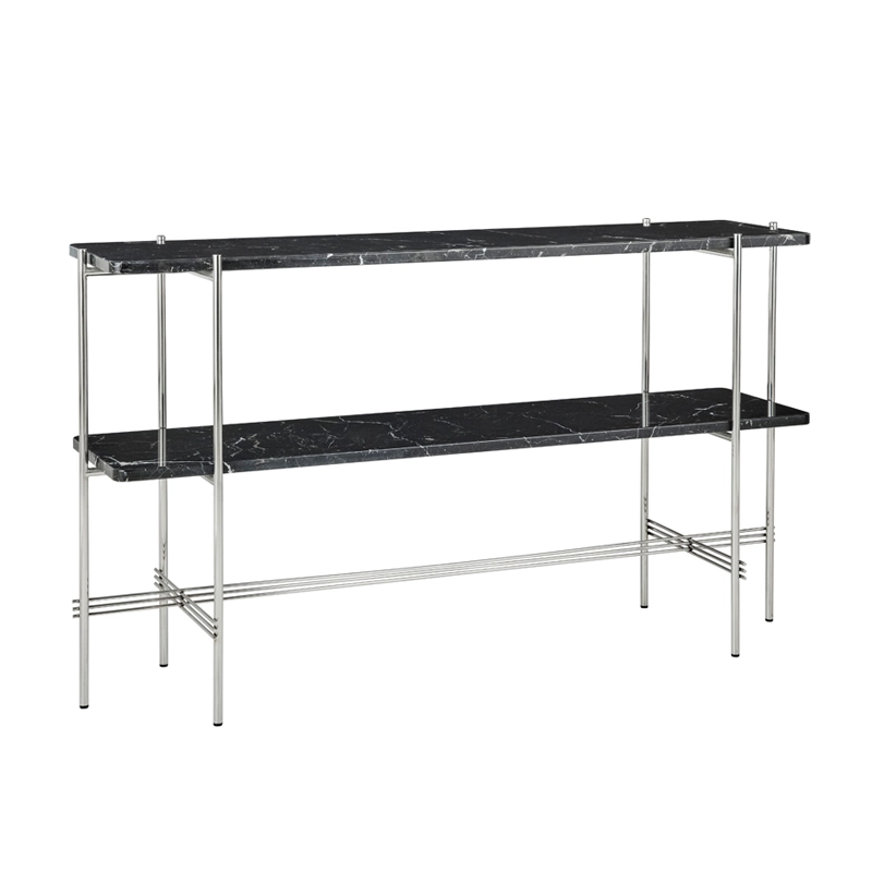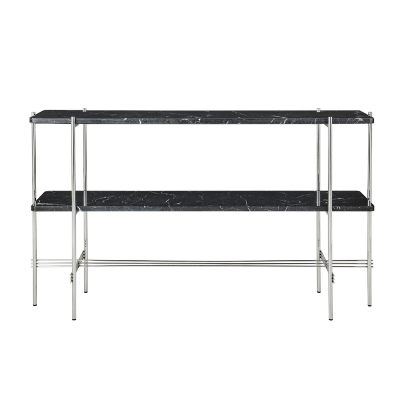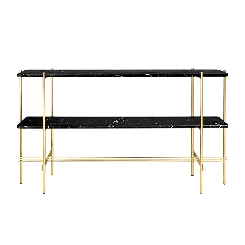 La collaboration entre le studio GamFratesi et la marque Gubi incarne la rencontre du design italien et l'inspiration danoise. L'approche minimaliste et l'artisanat traditionnel des pays scandinaves s'associent à un concept fort et émotionnel. GamFratesi joue sur les contrastes de matériaux et de formes avec un plateau en marbre ou en verre coloré reposant sur un piètement fin en métal noir ou laiton. Graphique et élégante, la console TS de