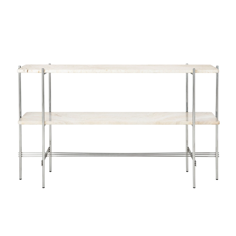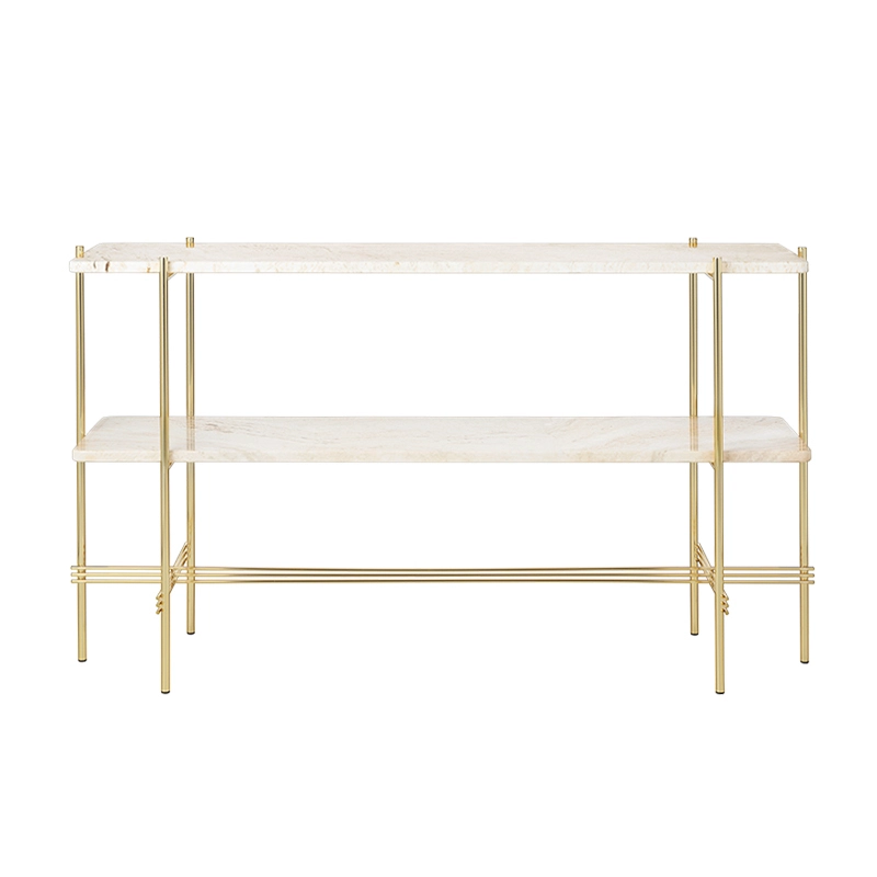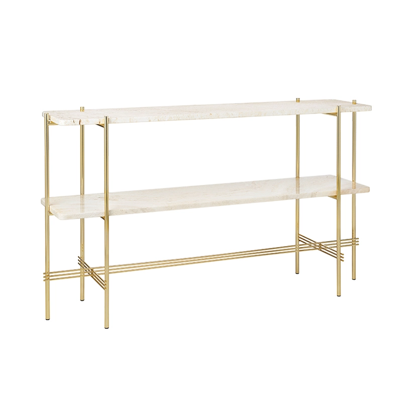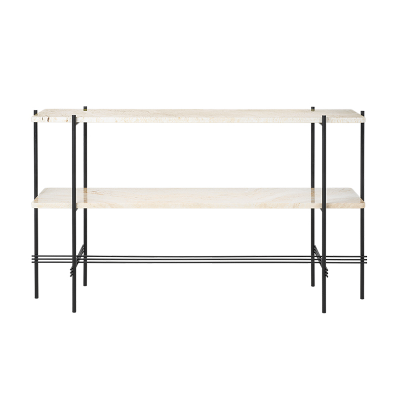 La collaboration entre le studio GamFratesi et la marque Gubi incarne la rencontre du design italien et l'inspiration danoise. L'approche minimaliste et l'artisanat traditionnel des pays scandinaves s'associent à un concept fort et émotionnel. GamFratesi joue sur les contrastes de matériaux et de formes avec un plateau en marbre ou en verre coloré reposant sur un piètement fin en métal noir ou laiton. Graphique et élégante, la console TS de Gubi apporte une touche d'élégance dans un salon ou entrée. La collection TS se décline également en version table basse, guéridon, table de repas et bureau.