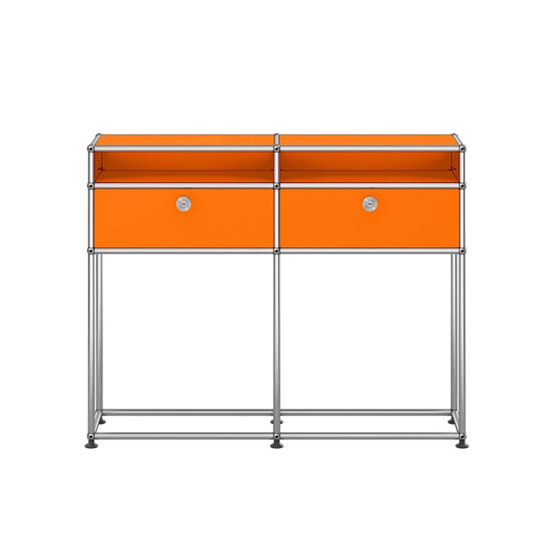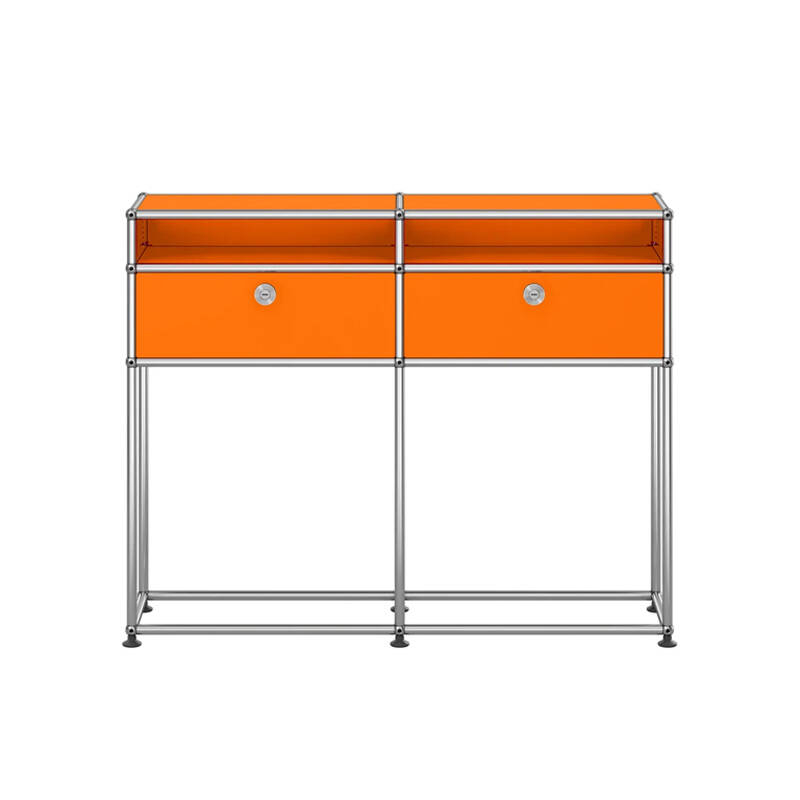 Créés par l'architecte Fritz Haller et l'industriel visionnaire Paul Schärer, les meubles USM sont fabriqués en Suisse depuis plus de 50 ans et sont reconnus dans le monde entier. La qualité de fabrication des meubles USM HALLER et leurs lignes intemporelles en font un classique incontournable du design, qui trouve sa place aussi bien dans les bureaux que dans les plus beaux intérieurs, classiques ou modernes. Sa conception modulaire permet de le faire évoluer au fil du temps selon les besoins et les envies. La console Haller M51 est composée de deux portes abattantes. La console Haller M51 est dotée d'une structure en acier chromé assemblé par des boules de connexion, habillée de panneaux d'acier thermolaqué et monté sur des patins réglables en hauteur. Elle dispose également d’un jeu d’ancrage mural. Portes classiques ne nécessitant pas de clefs. (Sécurisées à la livraison, les portes se déverrouillent pour la première fois à l’aide d’une pièce ou d’une clef normale)