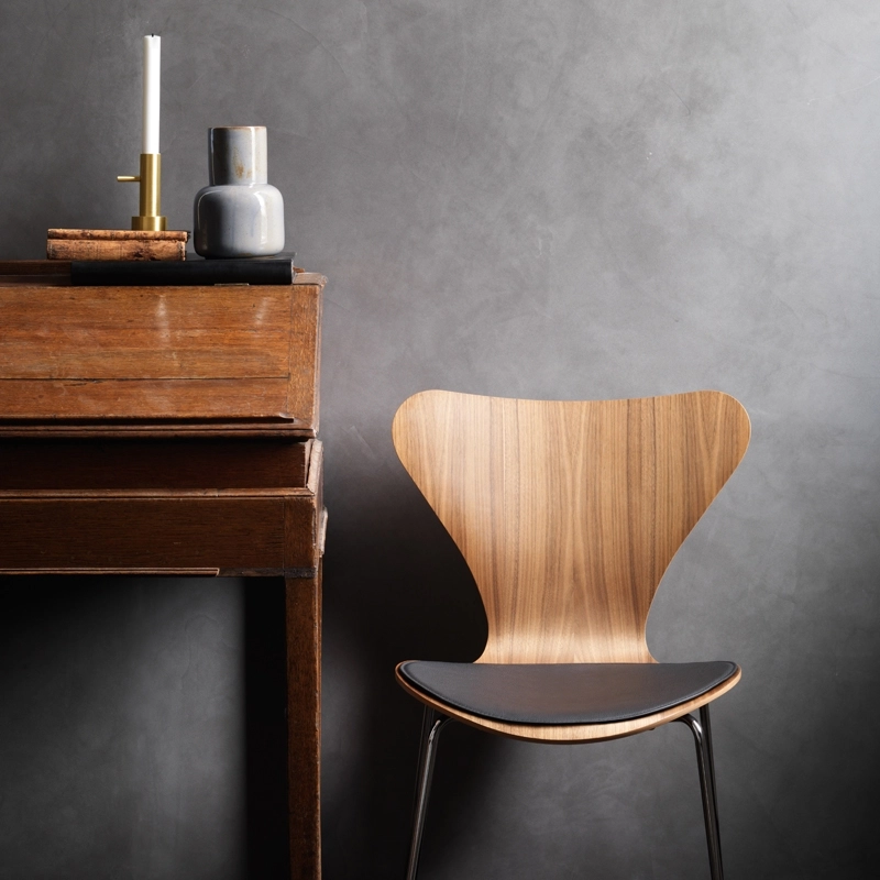 Pour sa collection Objects, Fritz Hansen propose une galette d'assise spécialement conçue pour la Serie 7. Avec ce coussin en cuir, l'iconique chaise de Arne Jacobsen allie grand confort et élégance. Il est disponible en cuir noir ou cuir Elegance couleur noyer.