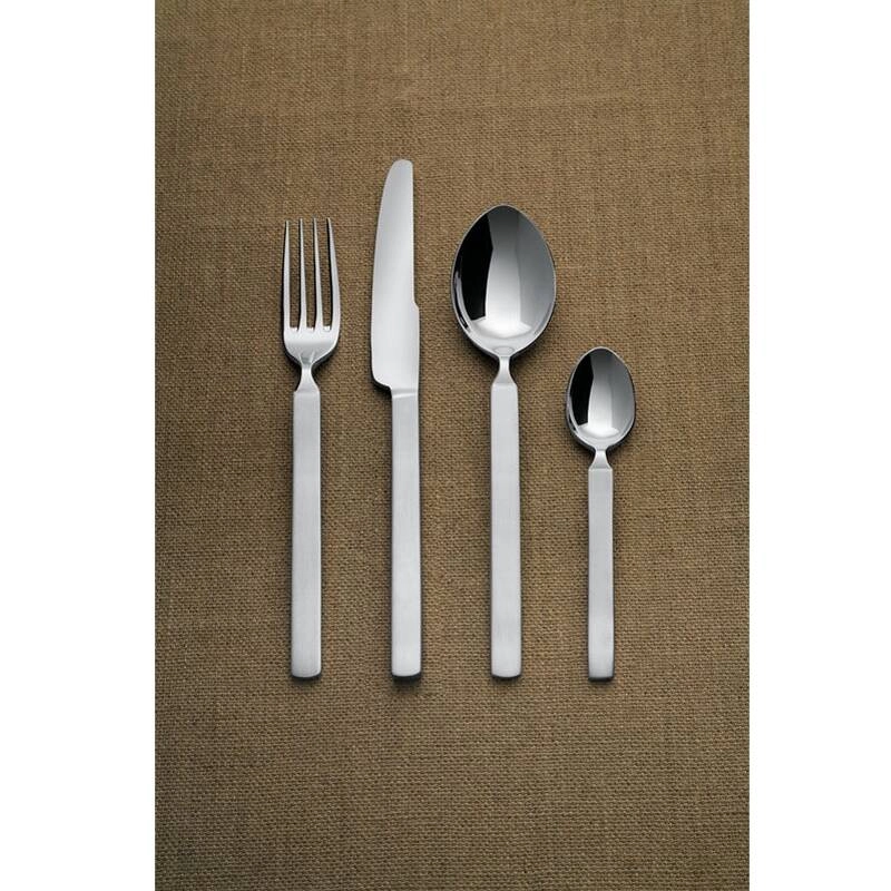 Dessiné par Achille Castiglioni pour Alessi, le service à couverts Dry a marqué le début de la production de services de la table de la marque. Ce sont aujourd'hui des classiques du design, par leur caractère novateur de la forme adoptée, associés à un grand confort d'utilisation et à une finition excellente. Dry est un service à couverts en acier brillant conçu pour 6 personnes. Il est composé de cuillers de table, fourchettes, couteaux, cuillers à café et fourchettes à gâteau. Un service design et raffiné pour tous ceux qui aiment créer de belles tables de repas dans la salle à manger.