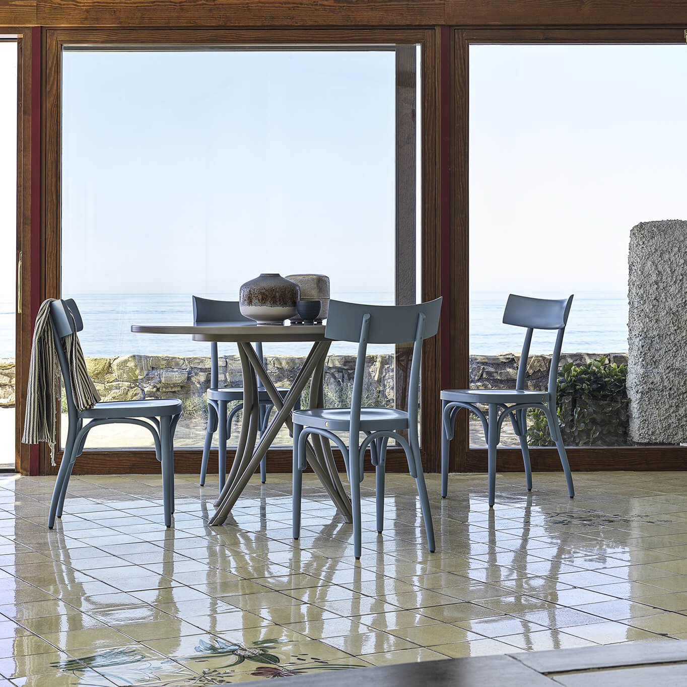Gebrüder Thonet Vienna nait d’une famille de producteurs de meubles à succès pendant l’ère industrielle. Michael Thonet, fondateur, travaille le bois et passe de la technique du bois lamellé collé à celle du bois de section ronde courbé à la vapeur. Élégance formelle, solidité et légèreté ont déterminé le succès de Gebrüder Thonet Vienna, qui en quelques années a ouvert des sites de production dans le monde entier. Un processus de production unique qui est enraciné dans une histoire riche d’influences