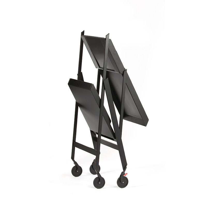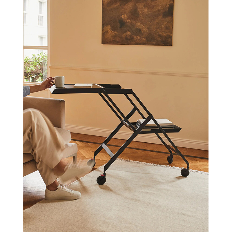 La table roulante Plico créée par Richard Sapper et éditée Alessi est un objet polyvalent. Elle possède diverses fonctions et peut servir de desserte pour les repas, de petite table de travail d'appoint ou encore de table de chevet. La table roulante Plico est très compacte une fois rabattue et occupe une surface minimale qui permet de la ranger facilement. Elle possède également des freins sur les roues postérieures rendant le chariot autoportant une fois rabattue. Ainsi, la table roulante PlicoAlessi promet une utilisation simple pratique.