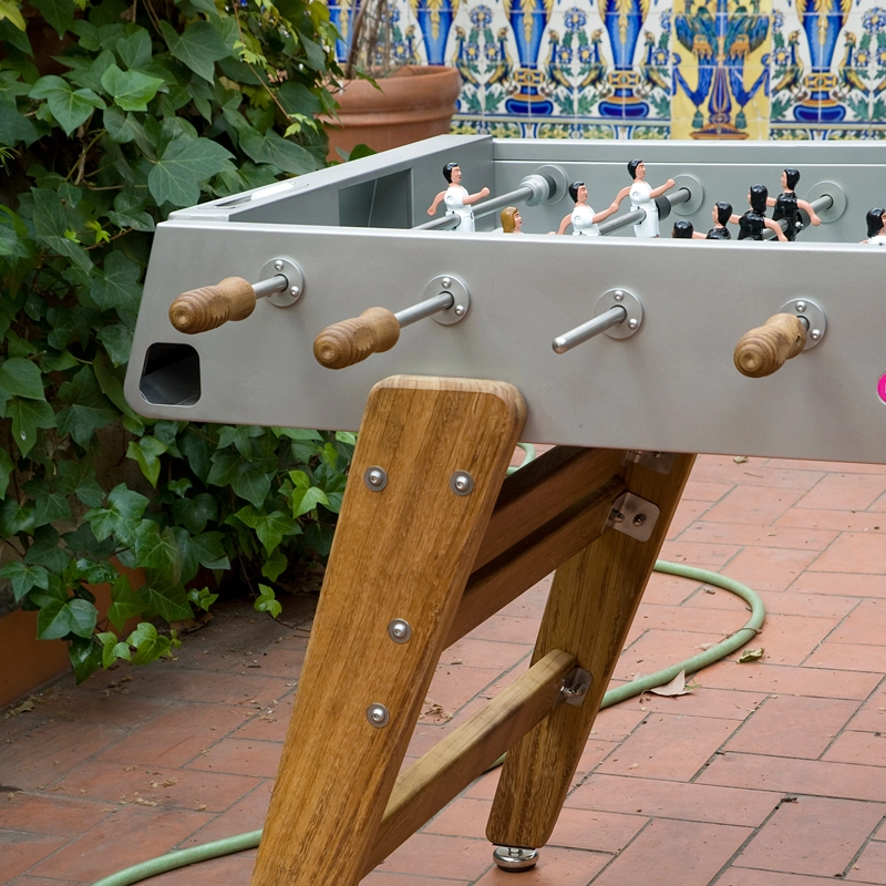 Le baby-foot RS3 Wood représente la progression de RS Barcelona dans sa détermination à repousser les limites. Pour adapter le baby-foot à la vie extérieure, la marque a choisi l’iroko, un bois extrêmement résistant. Les pieds en bois confèrent au design du baby-foot RS3 Wood une chaleur et un look contemporain. Conservant l’essence du jeu, ce baby-foot permet de profiter pleinement d’un match tout en bénéficiant d’un design durable et esthétique. Pour chaque couleur, le RS3 Wood est livré avec des équipes standard. Cependant, sur demande, les équipes peuvent être personnalisées : formation de l’équipe (3-3-4 ou 2-5-3), équipes masculines, féminines, équipes mixtes, couleur de peau, couleur du terrain, couleurs des maillots, ajout de logos...
