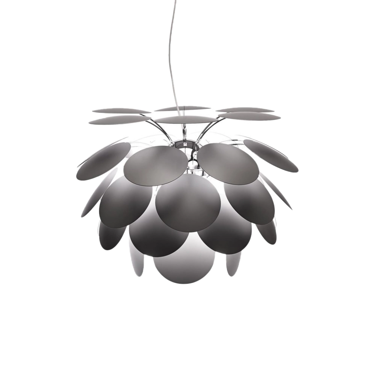La suspension Discoco 35 de Marset s’impose comme l’une des créations les plus emblématiques de la marque, une pièce sculpturale qui attire le regard même lorsqu’elle est éteinte. Conçue pour offrir un éclairage riche et nuancé, cette suspension design associe un éclairage direct orienté vers le bas à un jeu d’ombres et de reflets soigneusement étudié, créant une atmosphère vibrante et enveloppante dans tout type d’intérieur. Quand la Discoco 35 n’est pas allumée, elle devient un véritable élément décoratif, presque sculptural, capable de structurer et d’habiller un espace à elle seule. Ses formes arrondies apportent une sensation de rythme et de mouvement, tout en laissant deviner un travail minutieux sur l’éclairage indirect. Cette singularité lui permet de s’intégrer aussi bien dans un salon que dans une salle à manger ou une chambre, là où l’on souhaite créer une ambiance chaleureuse, expressive et élégante. La Discoco 35 est bien plus qu’un luminaire. C’est une pièce expressive qui met en valeur le savoir-faire de Marset, un objet lumineux capable de transformer un intérieur en modulant la lumière avec subtilité.