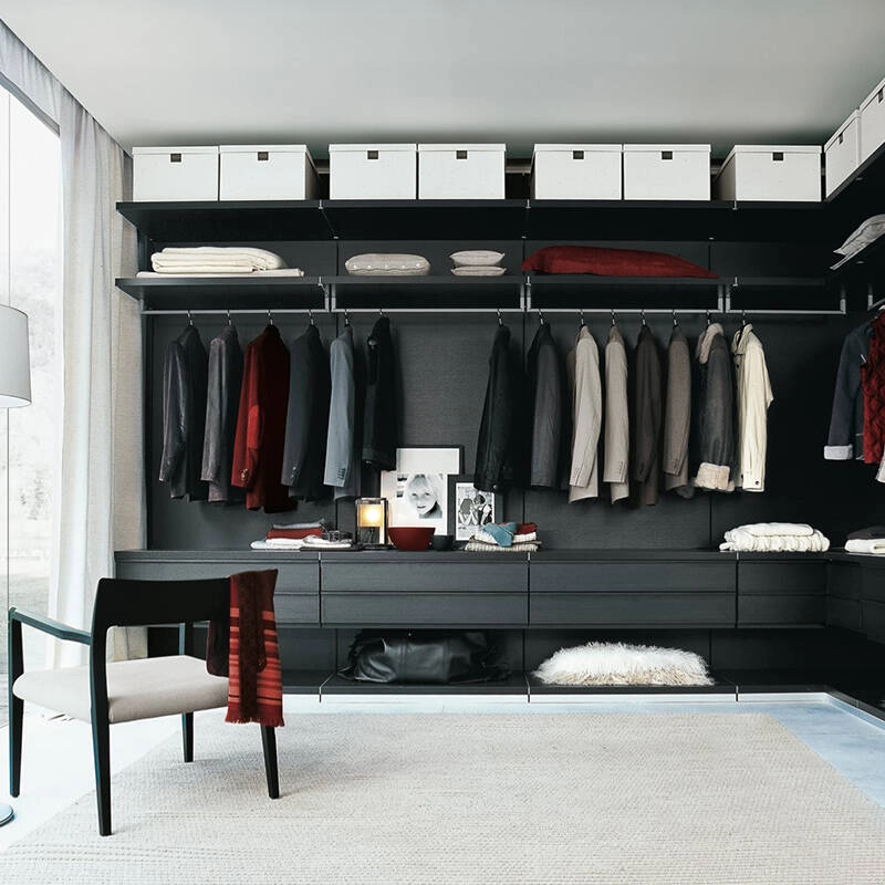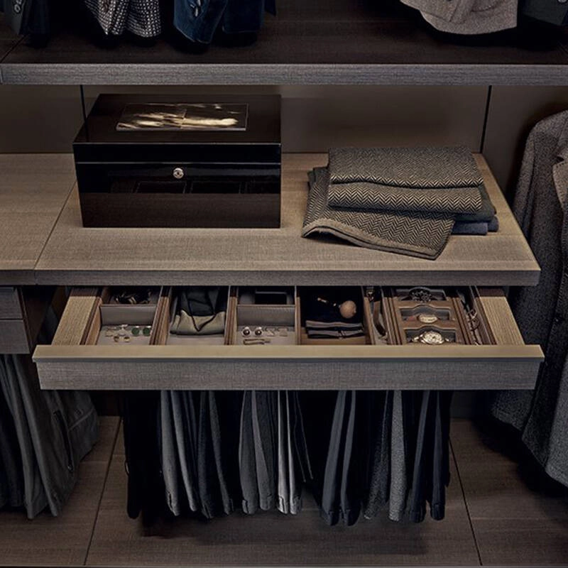 Le système Ubik de Poliform propose une organisation avancée du rangement, avec une série d'éléments et accessoires dédiés à des fonctions spécifiques : plateaux, tiroirs à façade en bois ou en verre, porte-chaussures amovibles, porte-pantalons, porte-chemises. Le système Ubik de Poliform vous permet de créer un dressing design dans lequel la fonctionnalité et le style personnel coïncident. Contactez-nous pour plus d'informations.