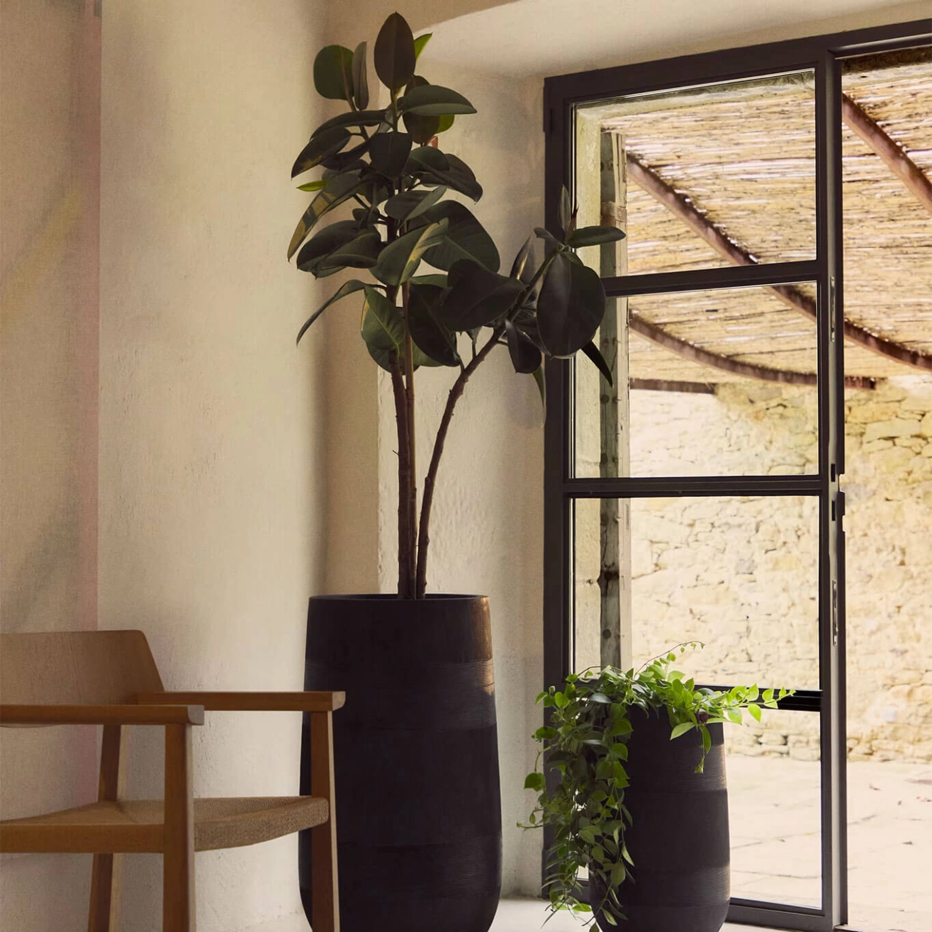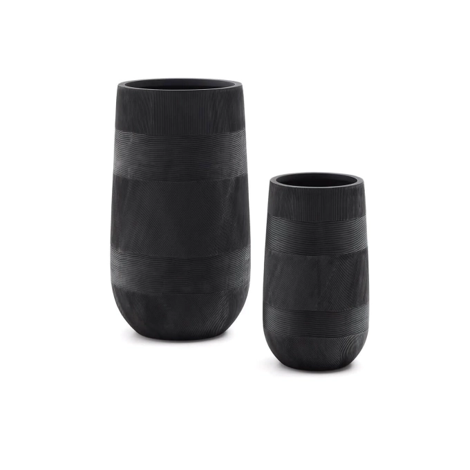 Kave Home séduit par son design organique et ses formes arrondies qui insufflent douceur et modernité à tous les espaces. Avec leur finition effet ciment noir, ces cache-pots conjuguent esthétique contemporaine et esprit minéral, s’intégrant aussi bien dans un intérieur chaleureux que sur une terrasse ou un balcon. Fabriqués en polyciment, un matériau innovant composé de résine et de poudre de pierre, ils offrent l’apparence brute du ciment tout en garantissant une grande légèreté et une résistance optimale. Adaptés à une utilisation en extérieur, ils disposent d’un trou d’évacuation à la base permettant l’écoulement de l’excès d’eau et favorisant ainsi la bonne santé de vos plantes. À la fois décoratifs et fonctionnels, les cache-pots Tival mettent en valeur vos compositions végétales et apportent une touche d’élégance naturelle qui transforme votre espace en un véritable havre de fraîcheur et de style.