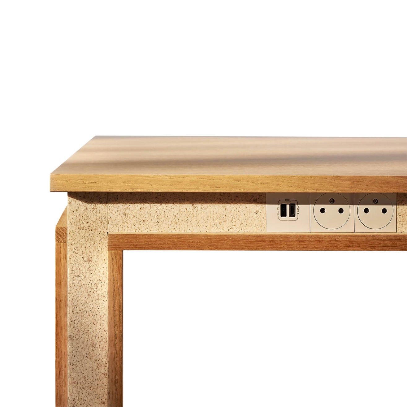En option : électrification avec 2PC + USB-USBC + goulotte chêne massif vernis