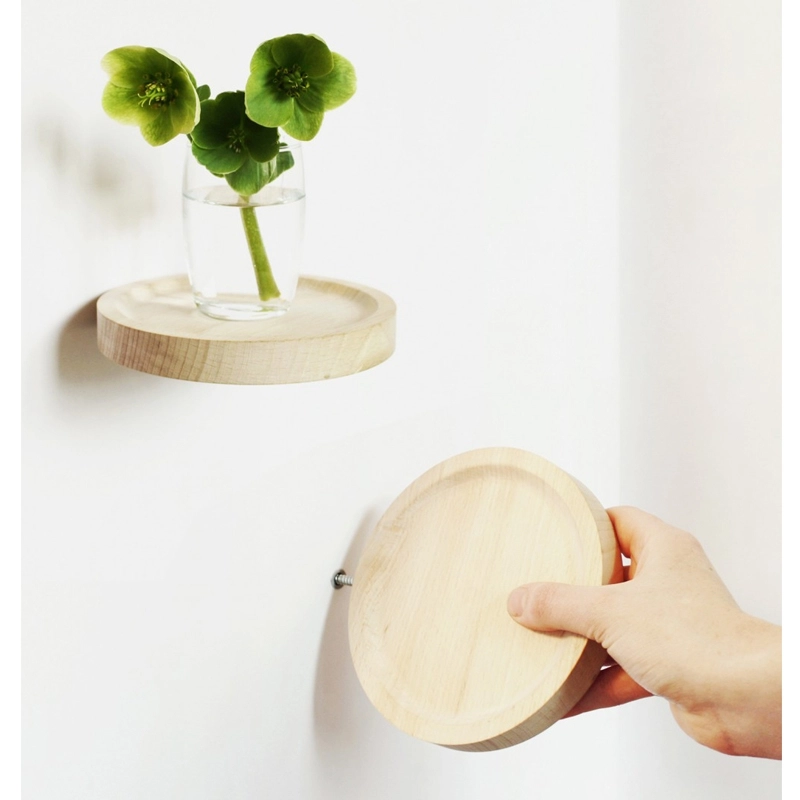 Création de Inga Sempé pour la maison d'édition Moustache, Balcon est une collection de petites étagères qui donnent du relief au mur. Ces petits disques en hêtre s'accrochent comme des patères pour exposer vos objets favoris directement sur le mur de la chambre. Ils permettent également de créer une composition originale sur le mur ou servir de vide-poche dans l'entrée. Balcon se décline en trois modèles : un disque simple, vendu par deux ou par trois, un récipient vide-poche et une étagère combinée à un miroir.