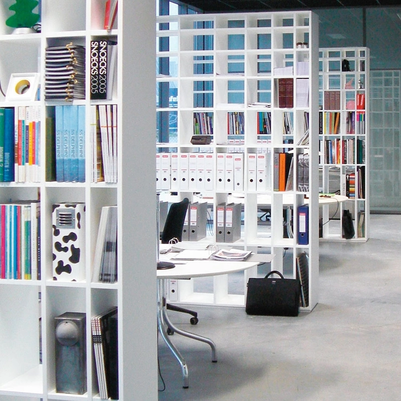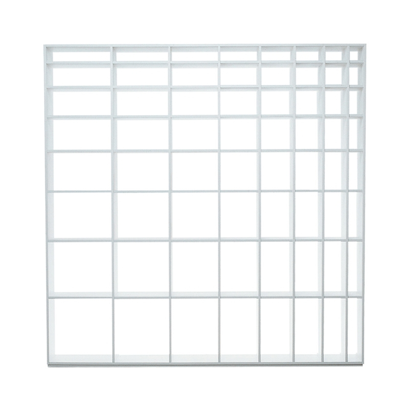 En 1970, Shiro Kuramata dessine pour Cappellini cette bibliothèque ouverte des deux côtés et composée de panneaux en MDF laqué blanc. Dans un carré surdimensionné, le designer a créé des compartiments dont toutes les tailles sont différentes. Cette originalité crée un rangement graphique qui impose sa personnalité dans un salon tout en étant fonctionnel.