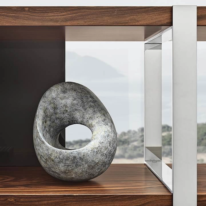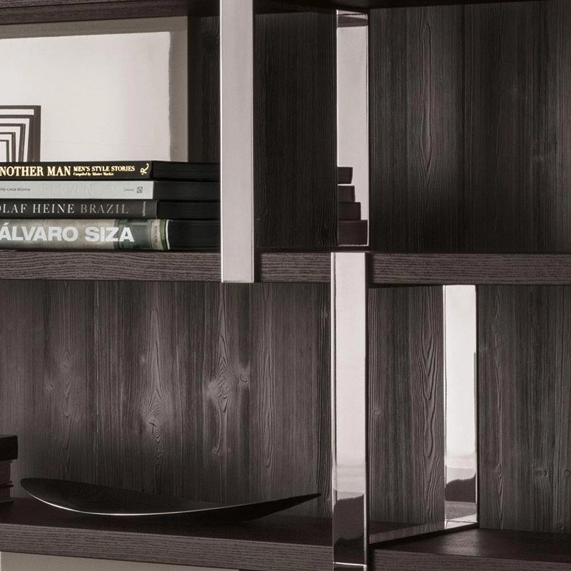 Editée par Minotti, Dalton est une bibliothèque qui joue les protagonistes dans le séjour, grâce aux nouvelles finitions qui lui donnent un charme très contemporain. La bibliothèque Dalton est proposée avec une série de finitions inédites, qui en multiplient les possibilités d’utilisation et permettent de nouvelles interprétations stylistiques. Les nouvelles finitions proposent entre autres les dossiers laqués brillants dans les couleurs Warm Grey ou Granit, tandis que les étagères de forte épaisseur existent en chêne noir sablé. Les supports verticaux en métal sont chromés brillants et, contrairement à la version peinte couleur Étain, ne présentent pas la finition “mille raies”.