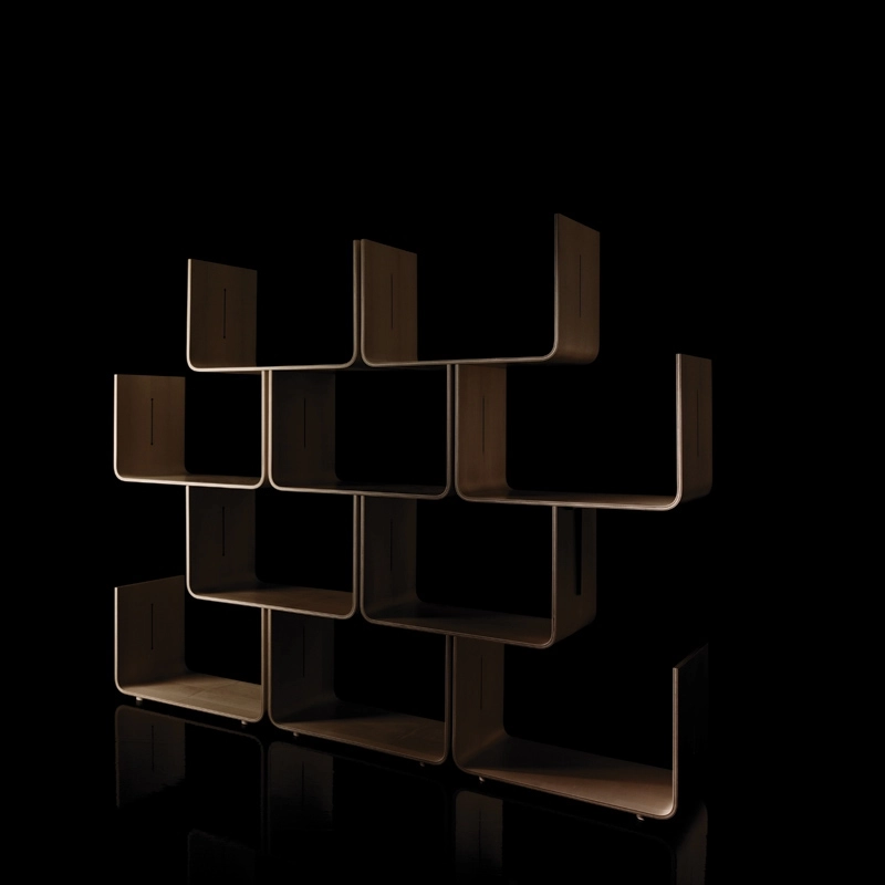 Elysée est un système d'étagères modulables, dessiné par Pierre Paulin et édité par Magis. Pierre Paulin a créé des objets design dans la résidence de l'Elysée sous Georges Pompidou et François Miterrand, d'où le choix du nom de ces modules. Original, Elysée est réalisé en érable mutilplis et prend la forme d'un empilement de U qui aboutit à une construction arborescente très élégante.  Les pièces sont reliées entre elles par des joints en forme de T, vendus séparément. Les crochets de fixation murale, également disponibles, sont conseillés à partir de quatre hauteurs de modules. Elysée, décliné en érable naturel ou teinté noir, répond à tous vos besoins de rangement et à votre imagination avec un nombre infini de composition pour la chambre, le salon ou encore l'entrée de la maison.   Module vendu à l'unité