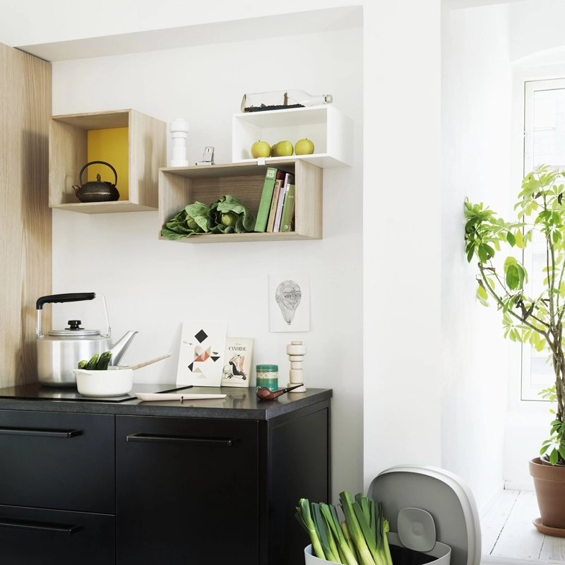 Mini Stacked  est une déclinaison de Stacked, un système de rangement très complet, composé de modules de différentes tailles qui s'assemblent facilement pour composer le meuble dont vous avez exactement besoin. JDS Architects a voulu créer un système qui permette de répondre à toutes les exigences de rangement, et pour toutes les spécificités d'un espace intérieur.  Pour les différents modules, les designers se sont basés sur les dimensions génériques des objets à ranger ou exposer, tout en faisant en sorte que chaque taille de module puisse s'associer les uns aux autres. Les Mini Stacked se fixent très facilement au mur et s'associent grâce aux clips d'assemblage? Stacked est  devenu un incontournable de la marque Muuto qui présente un potentiel de rangement infini !