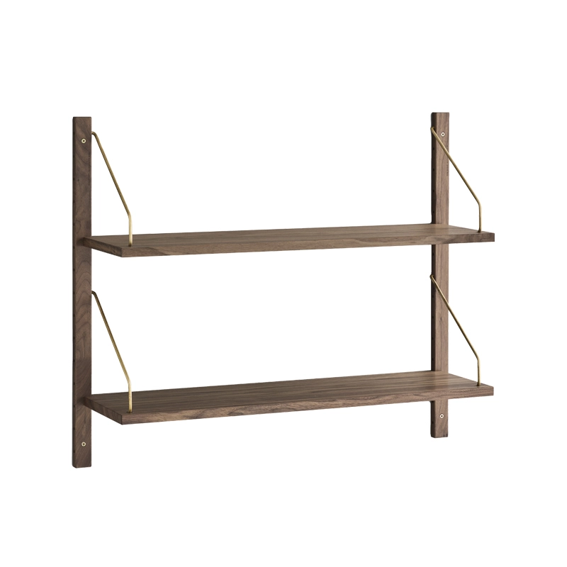 Royal System se compose de rails muraux en bois, d'étagères avec cintres en laiton ou en acier inoxydable et de diverses armoires. Le système peut être personnalisé dans de multiples combinaisons individuelles – soit comme système de bureau moderne, soit comme bibliothèque avec différentes armoires.