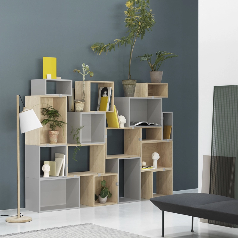 Imaginé par Julien De Smedt, Stacked de la marque Muuto incarne polyvalence et fonctionnalité. Ce système de rangement empilé peut être réorganisé selon ses propres envies et besoins. La collection Stacked propose de nombreuses configurations préconçues afin d’avoir des rangements modernes chez soi, au travail ou dans d’autres environnements. Il existe des étagères sans fond, avec fond, des étagères avec porte ou sans porte mais également des podiums et des socles à associer les uns aux autres pour faire votre configuration. Les différents modules sont en chêne ou en MDF laqué PU et le podium possède en plus un cadre en acier. Ils sont disponibles dans plusieurs dimensions. Les matériaux utilisés garantissent une solidité des modules. La collection Stacked de Muuto permet ainsi de confectionner et d’organiser soi-même son meuble de rangement selon ses goûts et ses besoins.