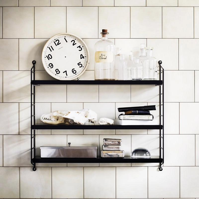 En 1949, Nils Strinning conçoit l'étagère String, un système de rangement astucieux et modulable au design scandinave conçu pour résoudre tous vos problèmes de rangement. Le système String est mondialement connu et tient son succès de la structure ingénieuse : des panneaux fins en métal fixés au mur, sur lesquels s'accrochent différents types de rangements. Facile à monter,  l'étagère String est un système qui s'adapte aux envies et aux besoins de mettre en ordre et laisser place nette. Créez votre propre combinaison unique en mélangeant des étagères String métal et des étagères String en bois. Ou jouez avec les couleurs et les accessoires. Les possibilités sont infinies. les étagères String Pocket est la version compacte du système. Cette petite étagère s'intègre facilement dans toutes les pièces de la maison : dans le salon pour ranger des livres, dans la cuisine pour la vaisselle, dans une chambre d'enfant et même dans une salle de bain. Cette étagère fait désormais partie des intemporels du design qui a su traverser les tendances sans prendre une ride. L'étagère String Pocket se monte facilement et dispose de 3 étagère réglables en hauteur. Une charge maximale de 20kg est recommandée.