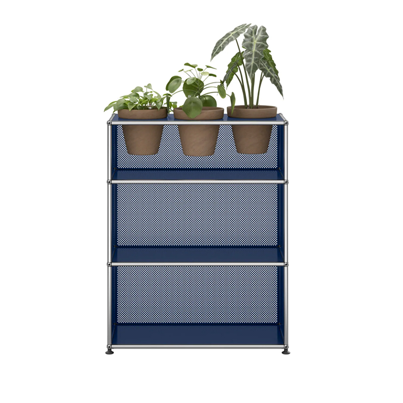 L’étagère Haller M56 est dotée d'une structure en acier chromé assemblé par des boules de connexion, habillée de panneaux d'acier thermolaqué et monté sur des patins réglables en hauteur.L’étagère Haller M56 USM est livrée avec 3 pots* pour vos plantes d’intérieur, ainsi qu’un kit d’arrosage par pot. Le kit garantit un arrosage régulier de vos plantes. Les plantes et le substrat ne sont pas fournis.