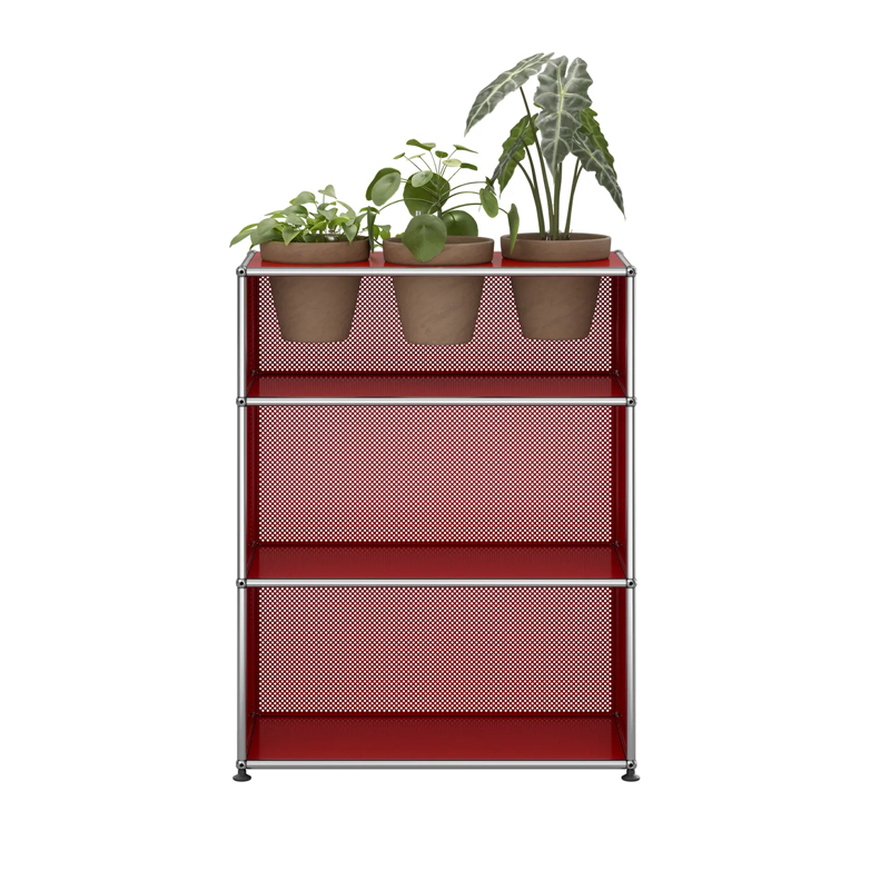 L’étagère Haller M56 est dotée d'une structure en acier chromé assemblé par des boules de connexion, habillée de panneaux d'acier thermolaqué et monté sur des patins réglables en hauteur.L’étagère Haller M56 USM est livrée avec 3 pots* pour vos plantes d’intérieur, ainsi qu’un kit d’arrosage par pot. Le kit garantit un arrosage régulier de vos plantes. Les plantes et le substrat ne sont pas fournis.