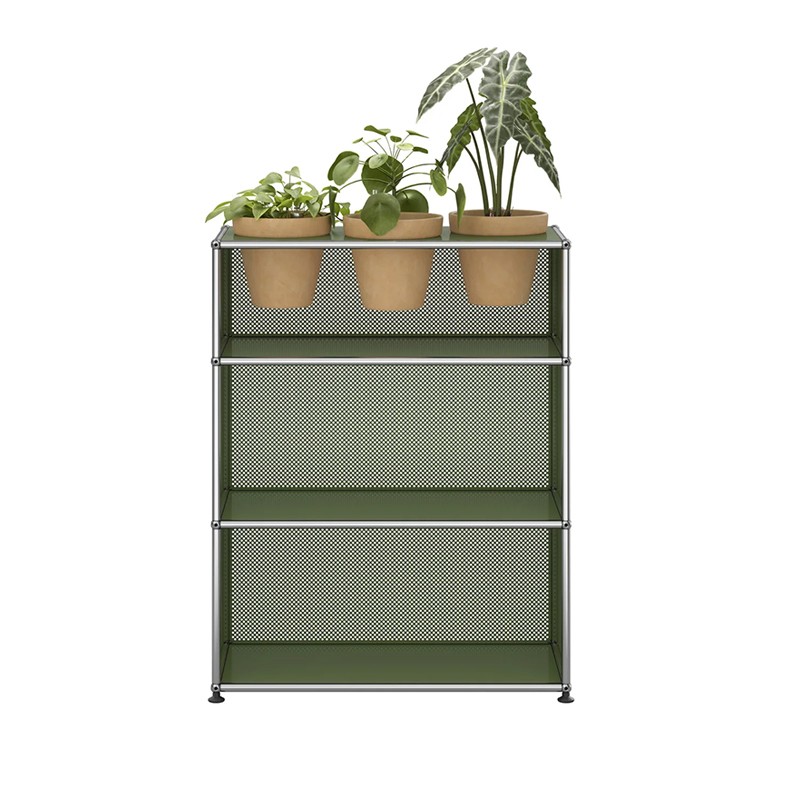 L’étagère Haller M56 est dotée d'une structure en acier chromé assemblé par des boules de connexion, habillée de panneaux d'acier thermolaqué et monté sur des patins réglables en hauteur.L’étagère Haller M56 USM est livrée avec 3 pots* pour vos plantes d’intérieur, ainsi qu’un kit d’arrosage par pot. Le kit garantit un arrosage régulier de vos plantes. Les plantes et le substrat ne sont pas fournis.