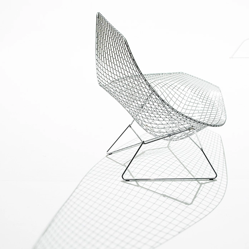 Né en 1915 en Italie, il est diplomé de la Technical High School, de la School of Arts and Crafts de Détroit, et de la Cranbrook Academy of Art de Bloomfield Hills dans le Michigan. Harry Bertoia ouvre son propre atelier de ferronnerie et enseigne la création de bijoux et le travail des métaux, puis travaille pour le couple Charles et Ray Eames à la division de la Evans Product Company pour créer les emblématiques chaises en contreplaqué moulé. Ce n’est qu’en 1950 qu’il crée son propre studio en Pennsylvanie avec Hans et Florence Knoll et conçoit alors cinq meubles de treillis métallique dont le fauteuil Diamant. Cette collection de mobilier est connue aujourd’hui sous le nom de Bertoia pour Knoll.  Après un véritable succès sur le marché du design, il se consacre exclusivement à sa première passion en réalisant jusqu’à sa mort, plus de 50 sculptures exposées dans les villes des Etats-Unis et à l’étranger. Harry Bertoia reçoit de nombreux prix dont la médaille du meilleur artisan et la médaille d’or de l’Institut des Architectes Américains. Il a collaboré avec les plus grands architectes de l’époque comme Eero Saarinen. Son travail se caractérise par une forme quasi sculpturale et particulièrement aérienne comme il le disait lui-même sur la collection Bertoia : « Si vous regardez ces sièges, ils sont faits principalement d’air, comme une sculpture. Ils sont traversés par l’espace ».