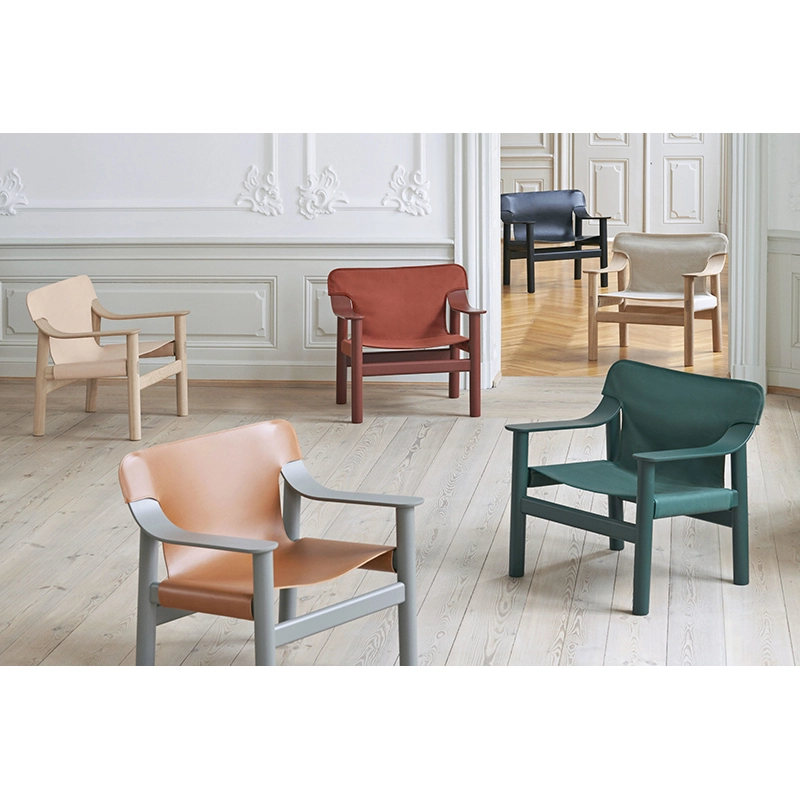 Avec Bernard, le designer Shane Schneck a voulu créer un nouveau classique du design abordable et moderne qui plaira aux générations futures. Edité par Hay, Bernard explore le genre du fauteuil louage dans un contexte contemporain. La jonction d'un cadre en bois massif et d'un revêtement visuellement léger crée une relation unique entre les deux composants. Bernard est une fauteuil confortable et durable avec une expression distincte. Le cadre est fabriqué en chêne massif ou en hêtre avec différentes finitions, et la housse à enfiler est disponible en cuir ou en toile marine industrielle résistante. Le résultat est un fauteuil qui permet de satisfaire tous types d’environnements.