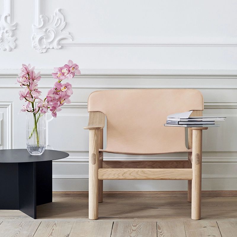 Avec Bernard, le designer Shane Schneck a voulu créer un nouveau classique du design abordable et moderne qui plaira aux générations futures. Edité par Hay, Bernard explore le genre du fauteuil louage dans un contexte contemporain. La jonction d'un cadre en bois massif et d'un revêtement visuellement léger crée une relation unique entre les deux composants. Bernard est une fauteuil confortable et durable avec une expression distincte. Le cadre est fabriqué en chêne massif ou en hêtre avec différentes finitions, et la housse à enfiler est disponible en cuir ou en toile marine industrielle résistante. Le résultat est un fauteuil qui permet de satisfaire tous types d’environnements.