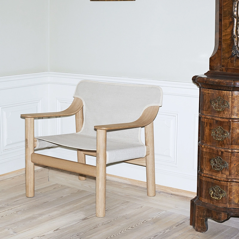 Avec Bernard, le designer Shane Schneck a voulu créer un nouveau classique du design abordable et moderne qui plaira aux générations futures. Edité par Hay, Bernard explore le genre du fauteuil louage dans un contexte contemporain. La jonction d'un cadre en bois massif et d'un revêtement visuellement léger crée une relation unique entre les deux composants. Bernard est une fauteuil confortable et durable avec une expression distincte. Le cadre est fabriqué en chêne massif ou en hêtre avec différentes finitions, et la housse à enfiler est disponible en cuir ou en toile marine industrielle résistante. Le résultat est un fauteuil qui permet de satisfaire tous types d’environnements.