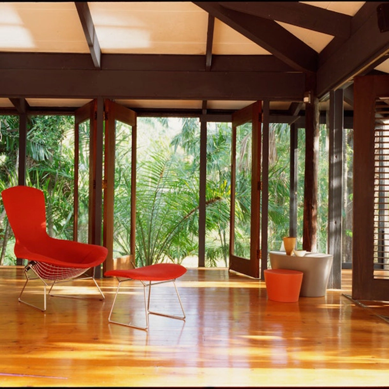 Né en 1915 en Italie, il est diplomé de la Technical High School, de la School of Arts and Crafts de Détroit, et de la Cranbrook Academy of Art de Bloomfield Hills dans le Michigan. Harry Bertoia ouvre son propre atelier de ferronnerie et enseigne la création de bijoux et le travail des métaux, puis travaille pour le couple Charles et Ray Eames à la division de la Evans Product Company pour créer les emblématiques chaises en contreplaqué moulé. Ce n’est qu’en 1950 qu’il crée son propre studio en Pennsylvanie avec Hans et Florence Knoll et conçoit alors cinq meubles de treillis métallique dont le fauteuil Diamant. Cette collection de mobilier est connue aujourd’hui sous le nom de Bertoia pour Knoll. Après un véritable succès sur le marché du design, il se consacre exclusivement à sa première passion en réalisant jusqu’à sa mort, plus de 50 sculptures exposées dans les villes des Etats-Unis et à l’étranger. Harry Bertoia reçoit de nombreux prix dont la médaille du meilleur artisan et la médaille d’or de l’Institut des Architectes Américains. Il a collaboré avec les plus grands architectes de l’époque comme Eero Saarinen. Son travail se caractérise par une forme quasi sculpturale et particulièrement aérienne comme il le disait lui-même sur la collection Bertoia : « Si vous regardez ces sièges, ils sont faits principalement d’air, comme une sculpture. Ils sont traversés par l’espace ».