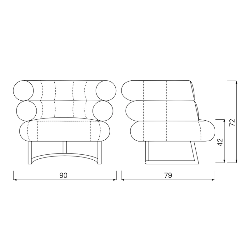 l 90cm x p 79cm x h 72cm, assise h 42cm