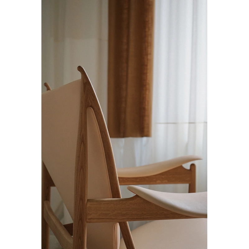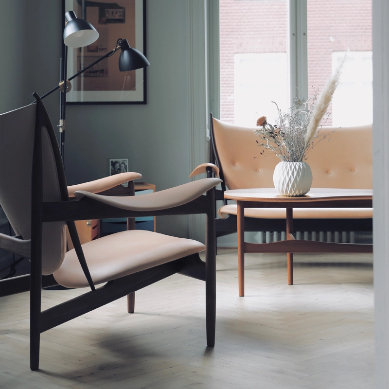Iconique, le fauteuil Chieftain est un des chefs d’œuvre de Finn Juhl, représentant le sommet de sa carrière en tant que designer. Lors de sa présentation en 1949, le fauteuil marque un renouveau dans la tradition du mobilier danois. Aujourd’hui, il est perçu comme un des représentants les plus importants du mouvement Moderne Danois aux Etats-Unis dans les années 50. Pour cette raison, Finn Juhl est souvent considéré comme l’un des pères du design danois moderne.