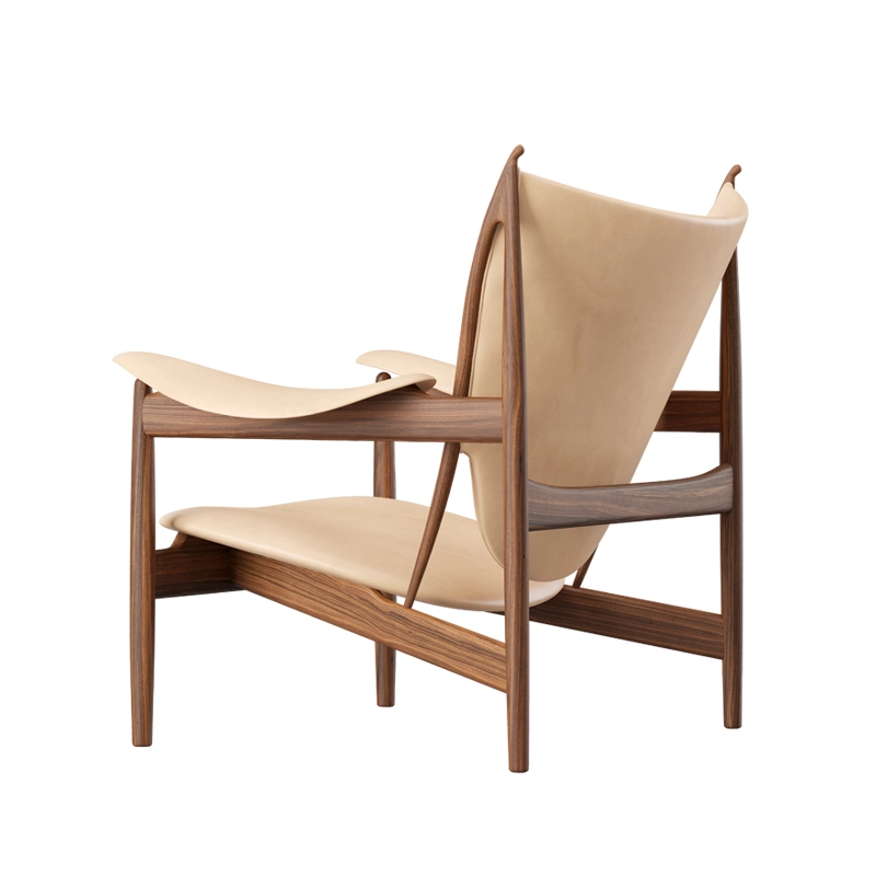 Inspiré par l’art moderne et les cultures étrangères, le fauteuil Chieftain, avec ses formes organiques, se libère du design danois traditionnel et du fonctionnalisme strict à la fois dans la forme, la réalisation et les matériaux.