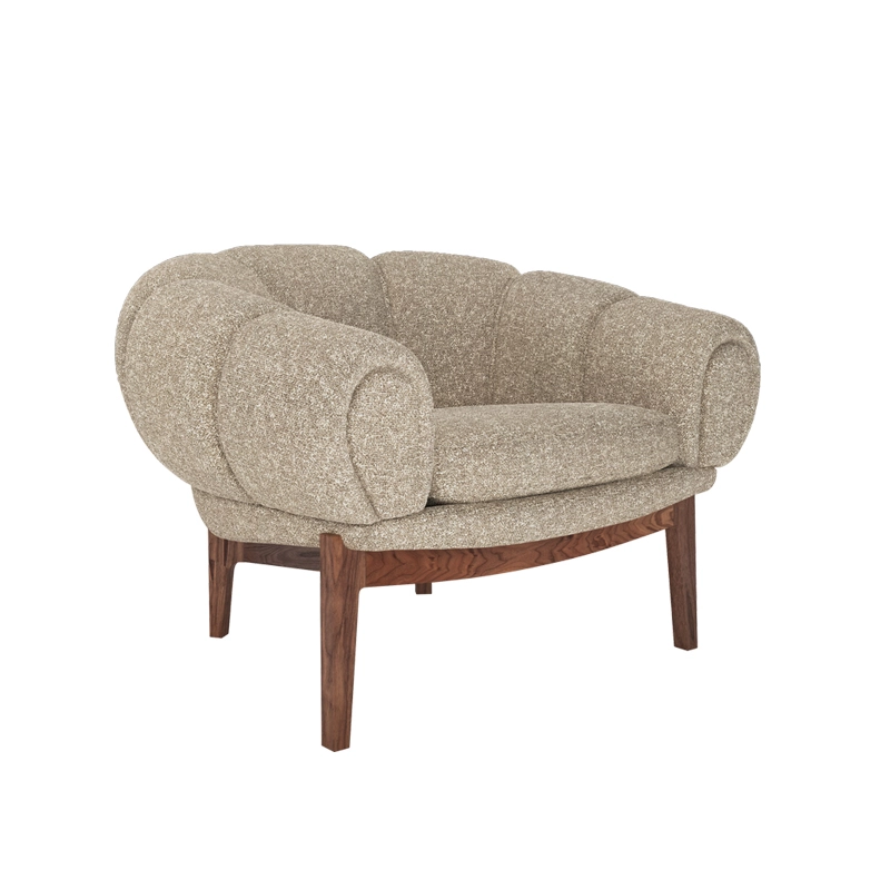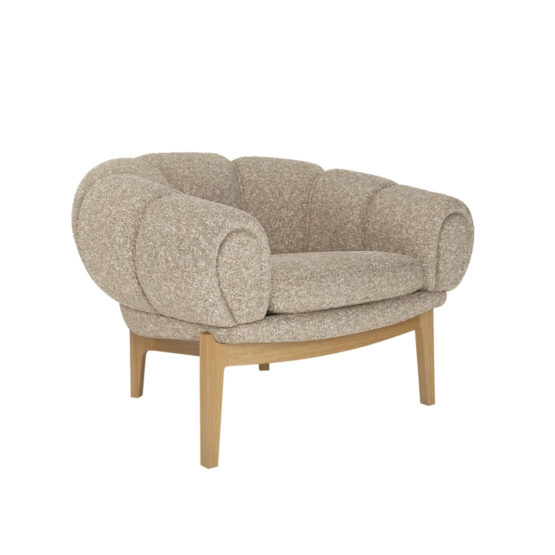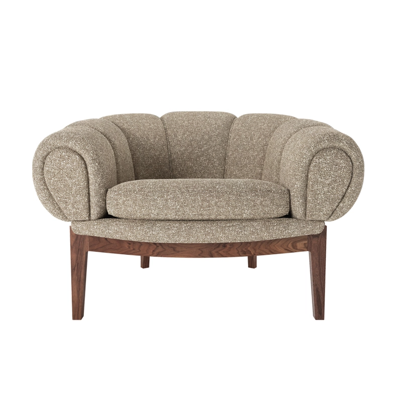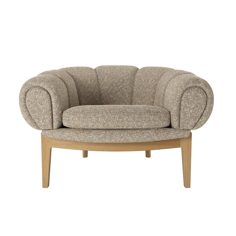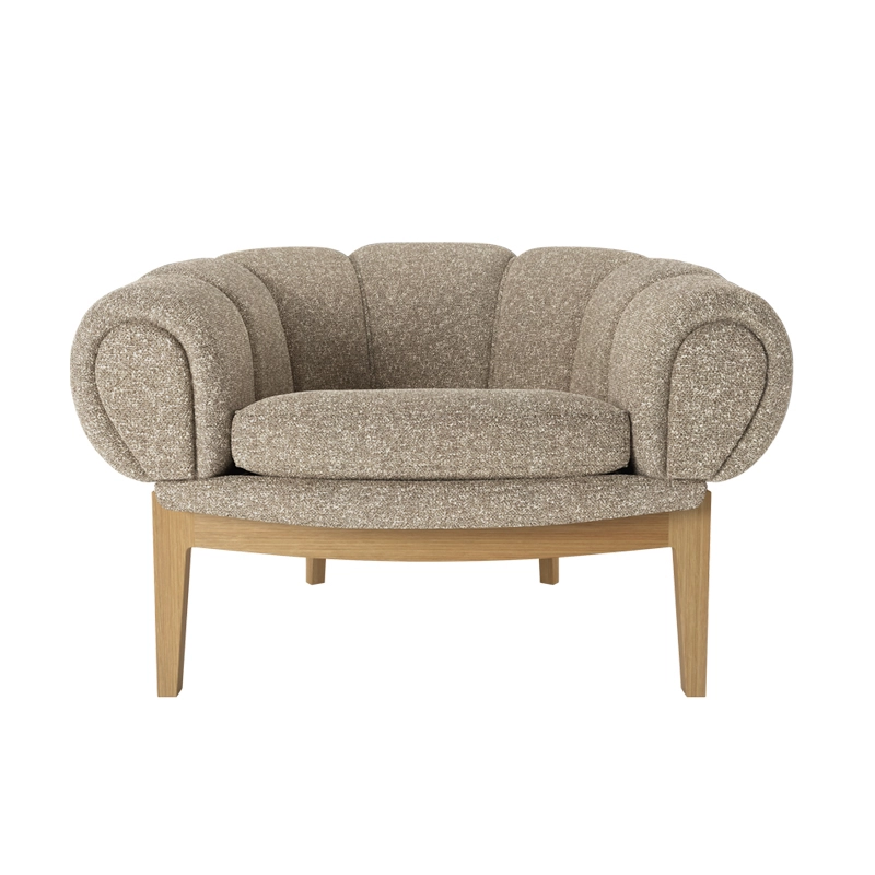 Dessinée par l’architecte et designer danois Illum Wikkelsø en 1962, la collection Croissant est une version élégante et ludique des traditionnels canapés et fauteuils Chesterfield. Pour Wikkelsø, un fauteuil ne doit pas uniquement servir à s’assoir droit, mais doit aussi être confortable quel que soit la position adoptée. Ainsi, il revisite ces pièces classiques pour un public plus détendu qui émerge dans l’optimisme des années 60. Avec sa forme caractéristique et gourmande de viennoiserie, le fauteuil Croissant se démarque avec un certain sens de l’humour dans tous les intérieurs. Il apporte sa personnalité à lui tout seul de votre salon, mais peut aussi très bien être associé à d’autres meubles au caractère fort. Gubi réédite cette magnifique pièce et rend hommage au design original, en respectant sa présence sculpturale et théâtrale, ses courbes organiques et une fabrication artisanale.