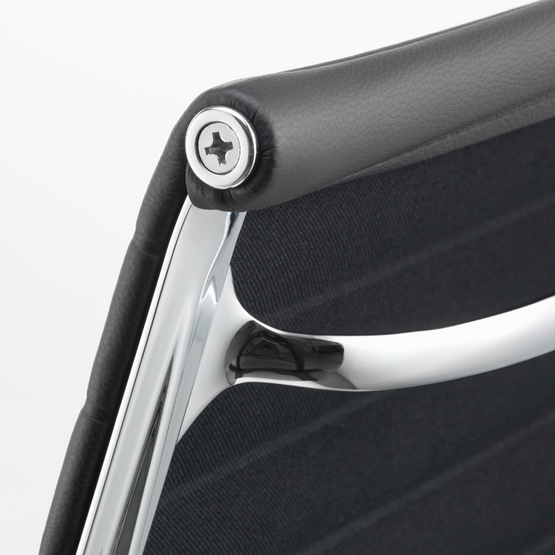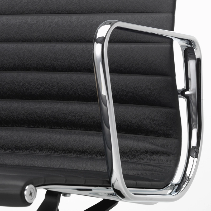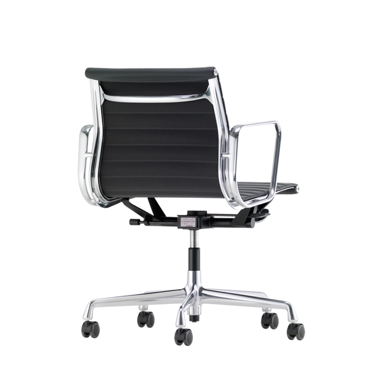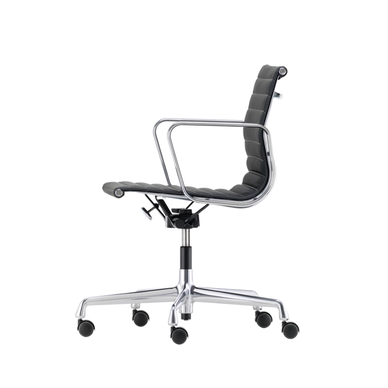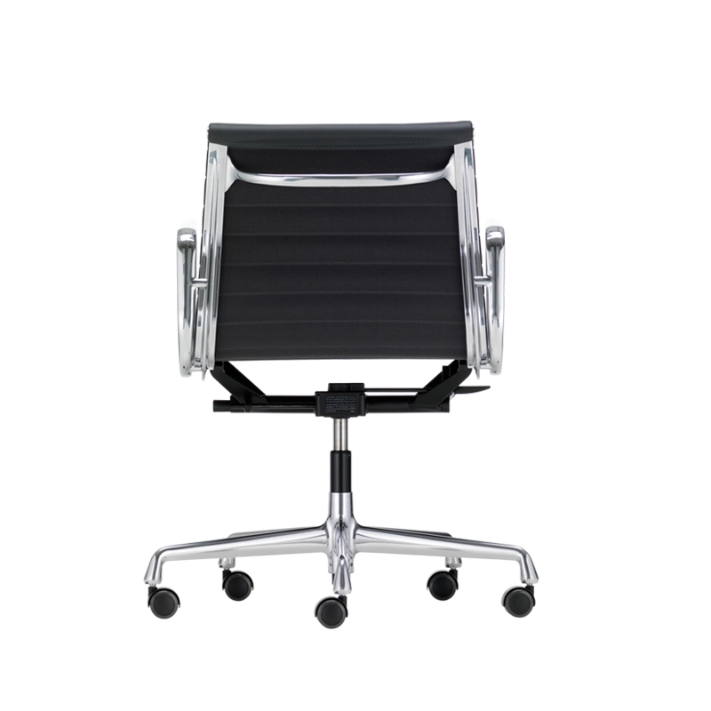 Vitra possède un mécanisme d'inclinaison arrière réglable et un blocage possible en position avancée. La hauteur du siège est réglable en continu par ressort à gaz. Le dossier et l'assise sont rembourrés et recouverts de cuir noir ou marron. La structure est en aluminium injecté. Le piètement est équipé de 5 roulettes noires. Les 50 ans d'existence du