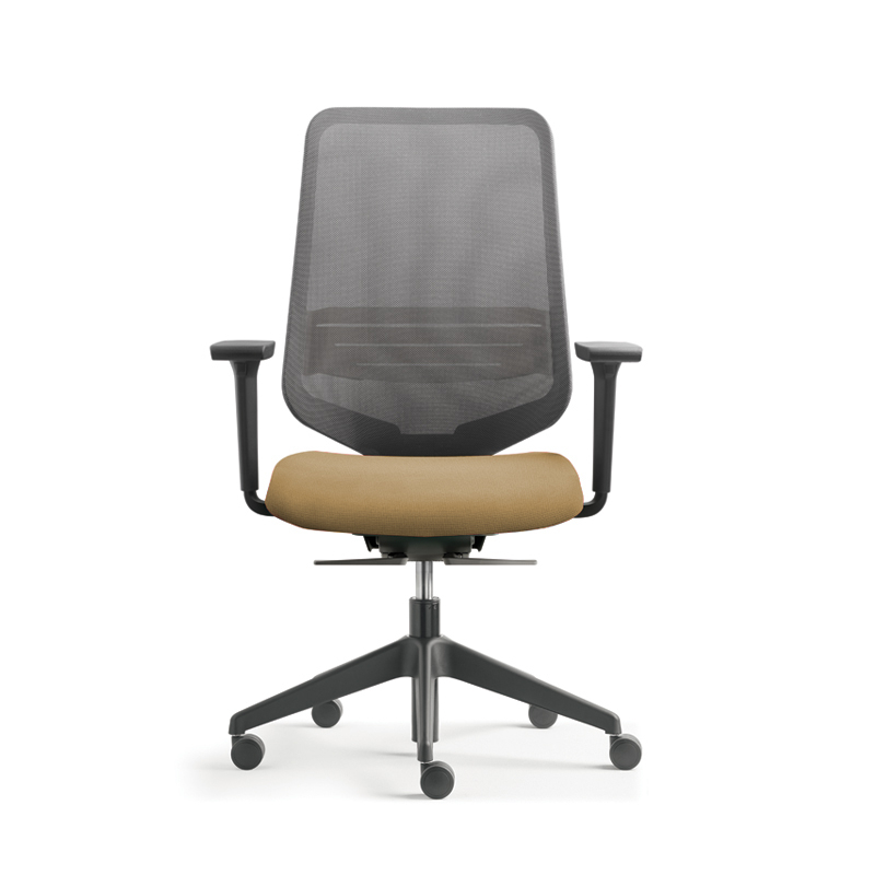 Dossier résille Meci noir, cadre noir, assise tissu Just, polyamide