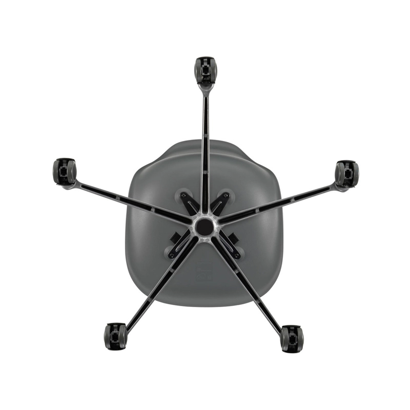 La Eames Plastic Side Chair est la version actualisée de la légendaire Fiberglass Chair de Charles et Ray Eames. Conçue en collaboration avec Zenith Plastics pour le concours « Low Cost Furniture Design » du Museum of Modern Art de New York en 1950, elle fut la première chaise en matière plastique de fabrication industrielle. Editée par Vitra, la Eames Plastic Chair PSCC  (Pivot Sidechair Cast base on Castors) est dotée d'un piétement à roulettes. La coque aux lignes organiques, qui assure un excellent confort, s'associe à ce piètement pivotant et transforme la Side Chair en siège de bureau.